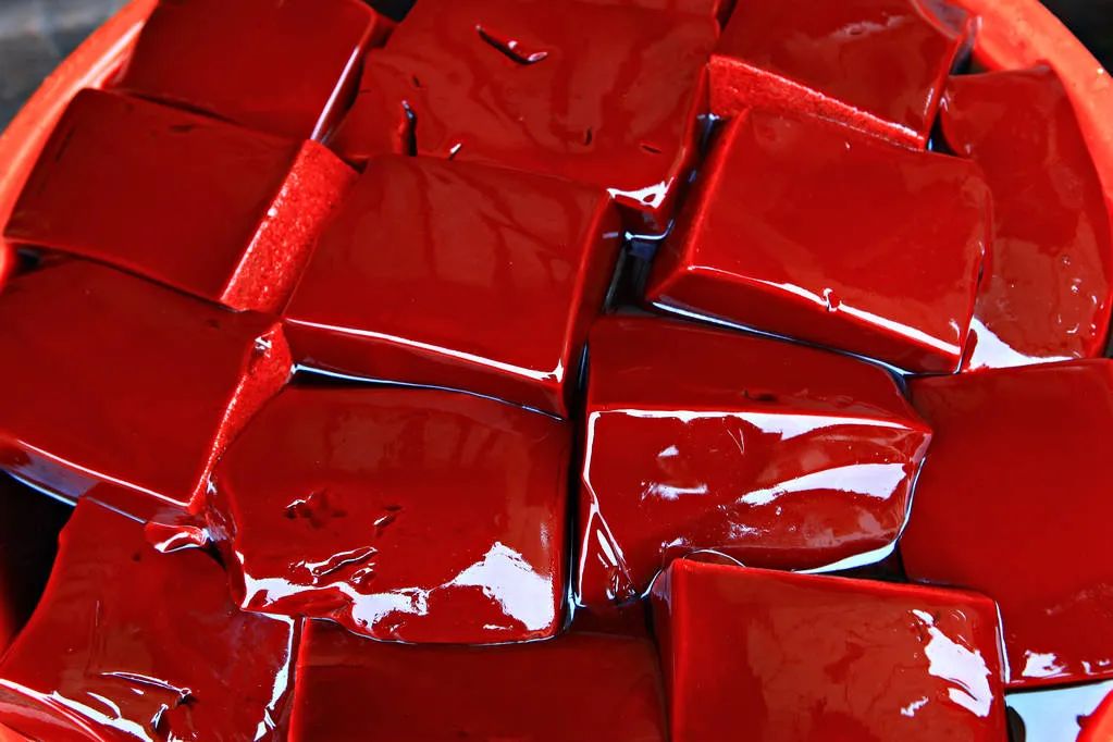 闻气味:放心猪血有淡淡腥味;而假猪血则通常闻不到腥味。