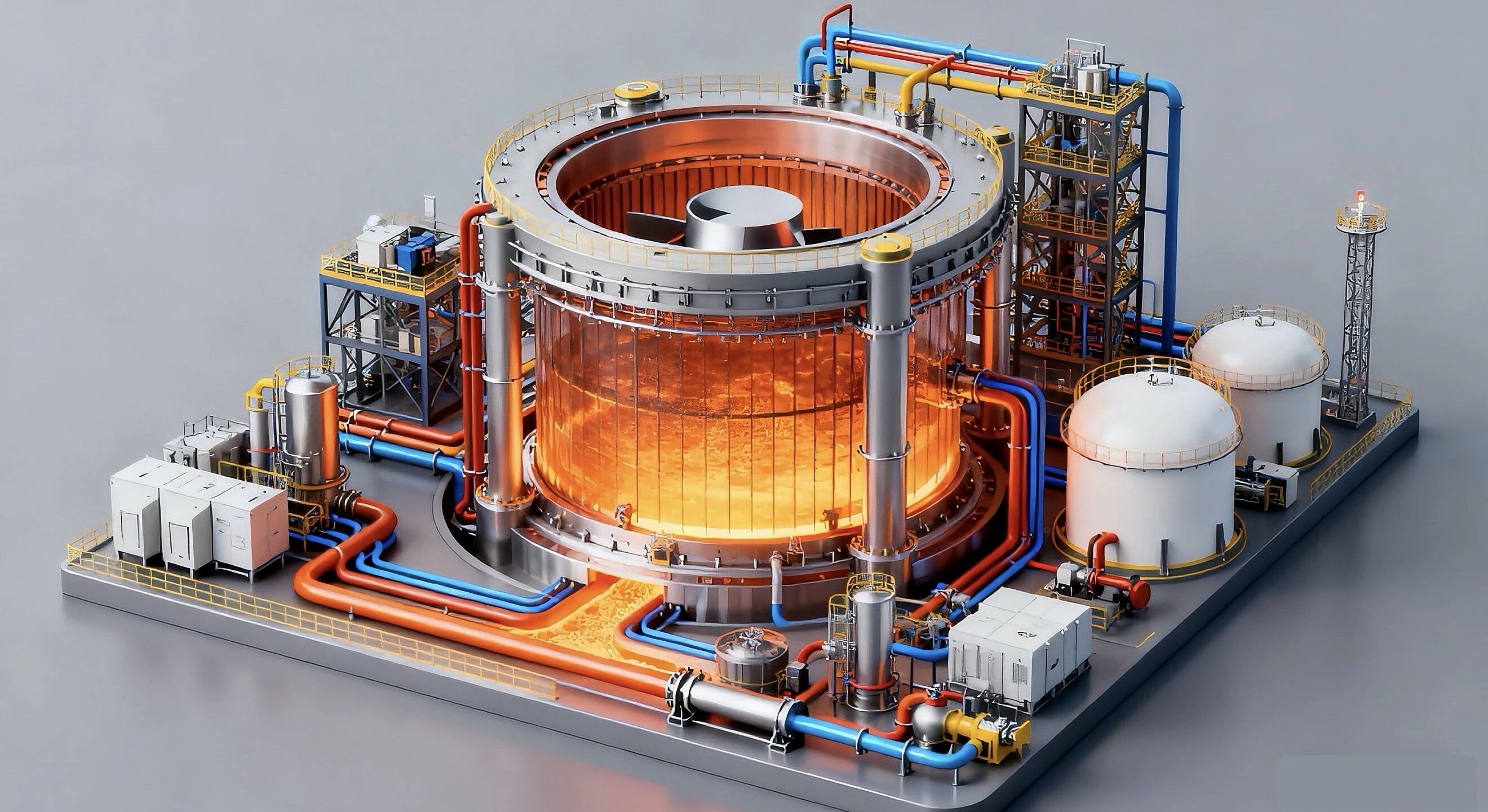 钍基熔盐堆被国际公认为第四代核能系统的重要方向,具有安全性高、核废料少和钍资源丰富等优势。我国建设的2兆瓦实验堆于2023年10月首次临界,2024年6月实现满功率运行,并于2025年成功实现不停机燃料循环与“钍-铀”转换,成为全球唯一运行的液态燃料钍基熔盐堆。目前,这座钍基熔盐实验堆已实现了整体国产化率大于90%,关键核心设备100%国产化,供应链自主可控。