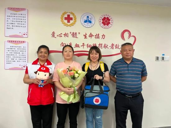 18日下午,在省、宜春市、樟树市红十字会工作者和志愿者见证下,从朱女士身上采集到的254毫升造血干细胞混悬液,顺利交接给患者所在医院的工作人员。当晚8时,朱女士捐献的“生命种子”,通过“绿色通道”紧急送往患者所在的城市,第一时间完成输注。