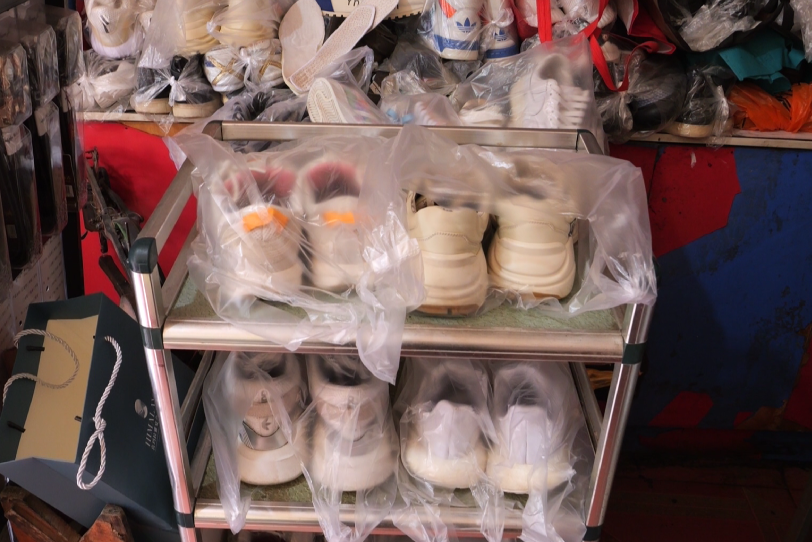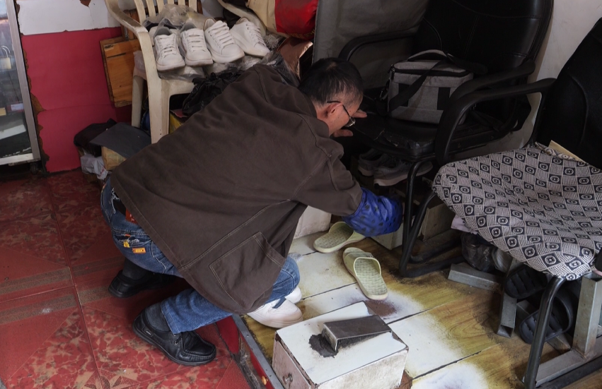 后来修鞋行业萎缩,他便拓展业务,开始经营洗鞋业务。