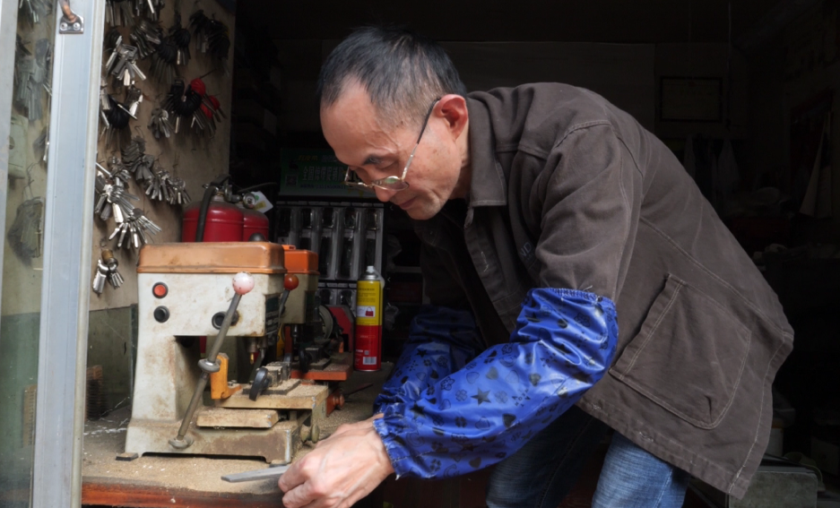 修鞋、洗鞋业务不景气,他又想着法子开始学习配钥匙技术。