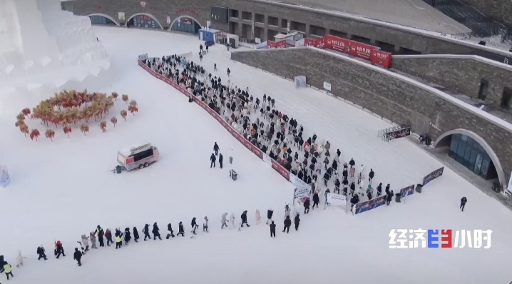 园区用25万立方米的冰雪打造了一千多个冰雪景观,精心设计了几十个冰雪游玩项目,每天一开园,冰滑梯游乐项目就排起了长队。