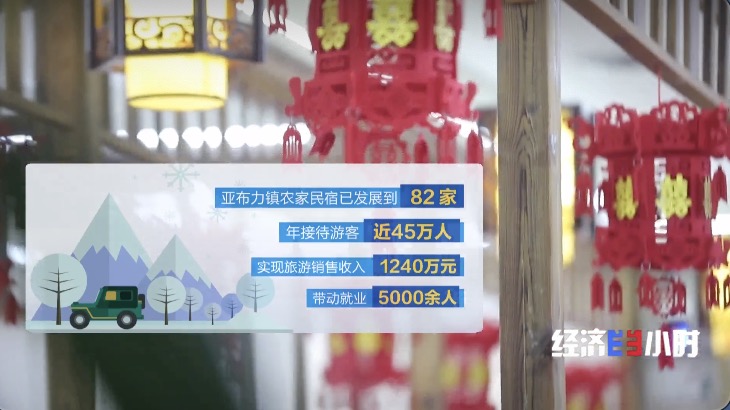 随着游客不断增多,亚布力镇的农家院、民宿人气爆棚,大红灯笼挂起来了,东北大花被也置办上了,再加上热气腾腾的铁锅炖、东北特色的大火炕,这些都成为吸引游客的特色招牌。