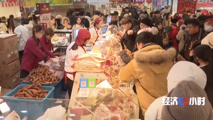 冰雪旅游的持续升温,也给哈尔滨带来巨大的消费活力。道里菜市场售卖哈尔滨红肠的摊位被南方人包围,成为菜市场里人气最旺的摊位。菜市场的工作人员也增加了一倍,以应对热情的消费者。