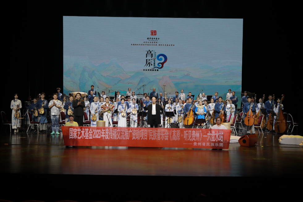 9月9日,由贵州省民族乐团、贵州省花灯剧院演出的国家艺术基金2023年度传播交流推广资助项目民族音乐会《高原·听见贵州》亮相2023多彩贵州文化艺术节,在六盘水市凉都大剧院精彩呈现。
