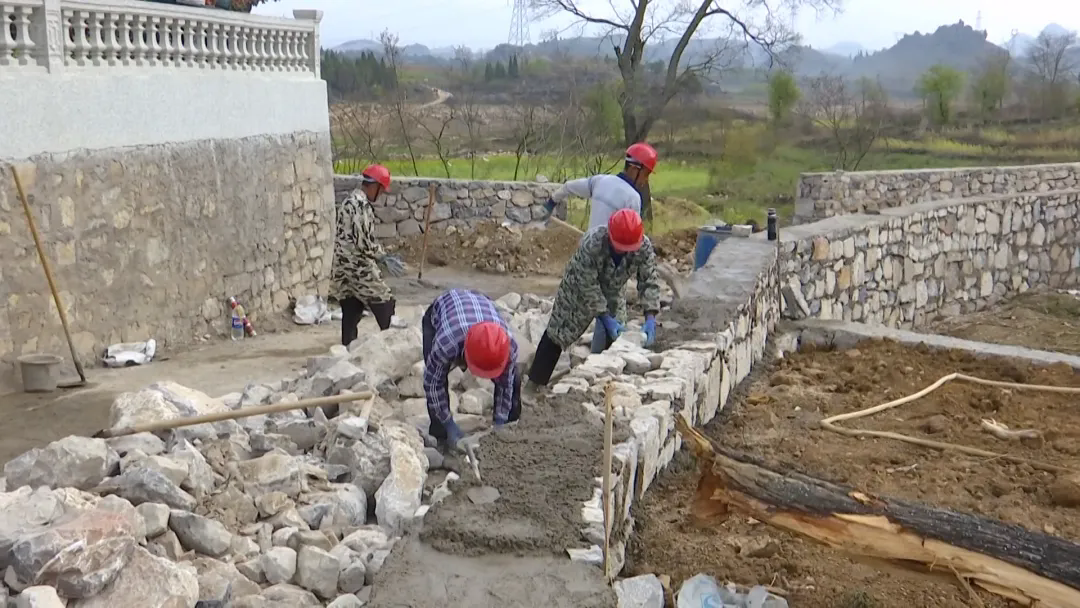 在德卧镇马鞭田村旅游产业环湖路建设现场,工人们分工明确、配合默契,或挥舞铁铲、锄头细致搅拌水泥、砂石等建筑混合料;或手握手锤、浆刀等专业工具精细砌筑路肩墙;一旁的大型挖掘机舒展铁臂,平稳有序开展路面平整作业,机械与人工协同施工,项目建设稳步推进。