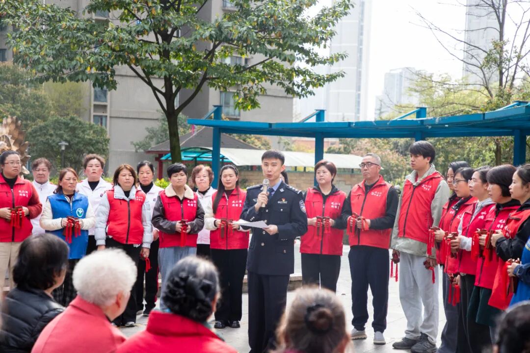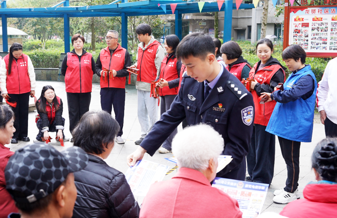 春风送暖,反诈同行。为筑牢辖区反诈防护墙,守护群众“钱袋子”,近日,贵阳市公安局观山湖公安分局联动世纪城街道龙贤社区、明珠助老社,在龙贤社区小太阳广场掀起一场别开生面的反诈宣传盛宴。世纪城派出所副所长王骞、龙贤社区党支部书记陈利兰、明珠助老社党支部书记杨朝群,与300余名社区居民齐聚现场,共赴这场“反诈知识”盛宴。