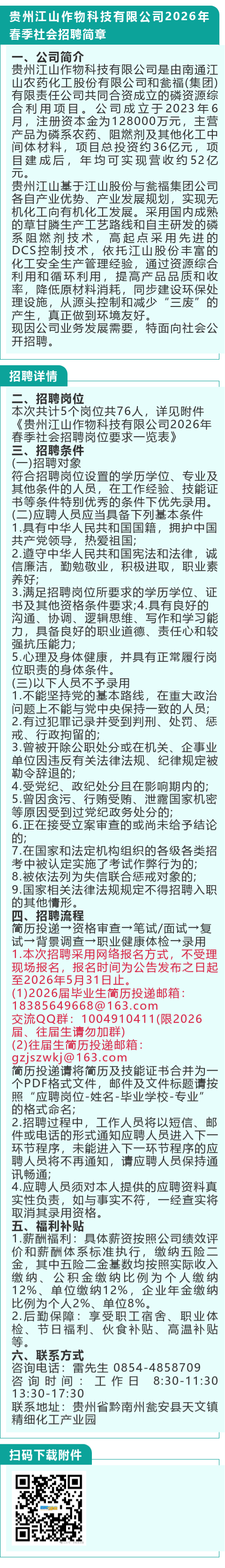 年薪7-20万元!五险二金、高温补贴等!5岗招聘76人!