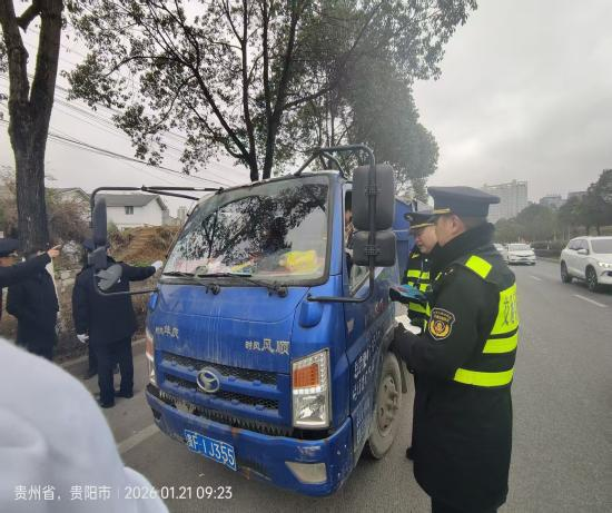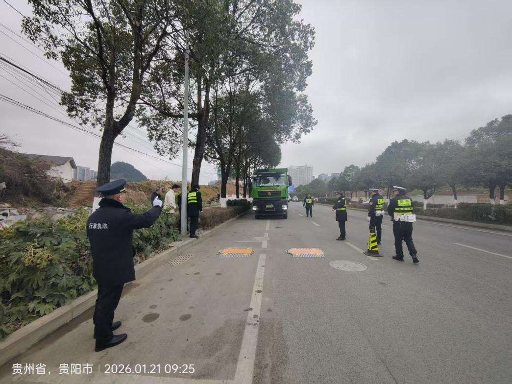 1月21日清晨,贵阳市交通运输综合行政执法支队观山湖大队的执法车已早早驶入辖区重点路段。随着“百日攻坚”行动的深入推进,一场针对超限超载运输的联合执法正紧锣密鼓展开,为辖区道路运输安全再添一道坚实屏障。