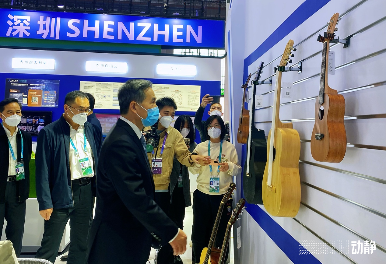现场工作人员还向任鸿斌介绍了贵州“黄金十年”发展成果,任鸿斌来到贵州高端制造业、信息科技、特色产品展区,详细了解了贵州轮胎、路桥、华为云及中国十大名茶都匀毛尖、遵义红、刺梨、辣椒等产业发展情况,并在正安吉他展区,听取了正安经开区负责人对正安吉他产业及文化的介绍。