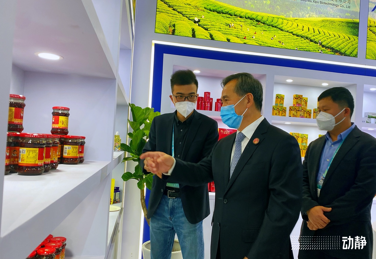 现场工作人员还向任鸿斌介绍了贵州特色食品、以及出口到乌兹别克斯坦等地的贵州茶叶。