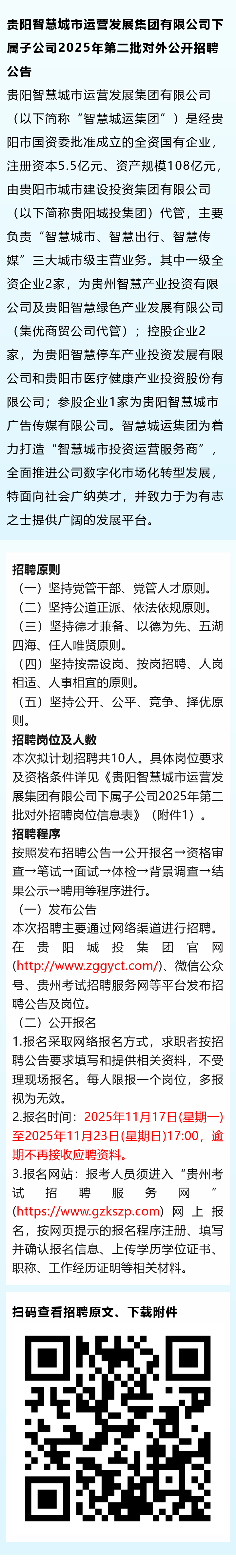 【国企】贵阳智慧城市运营发展集团有限公司下属子公司招聘!报名截止时间:2025年11月23日!