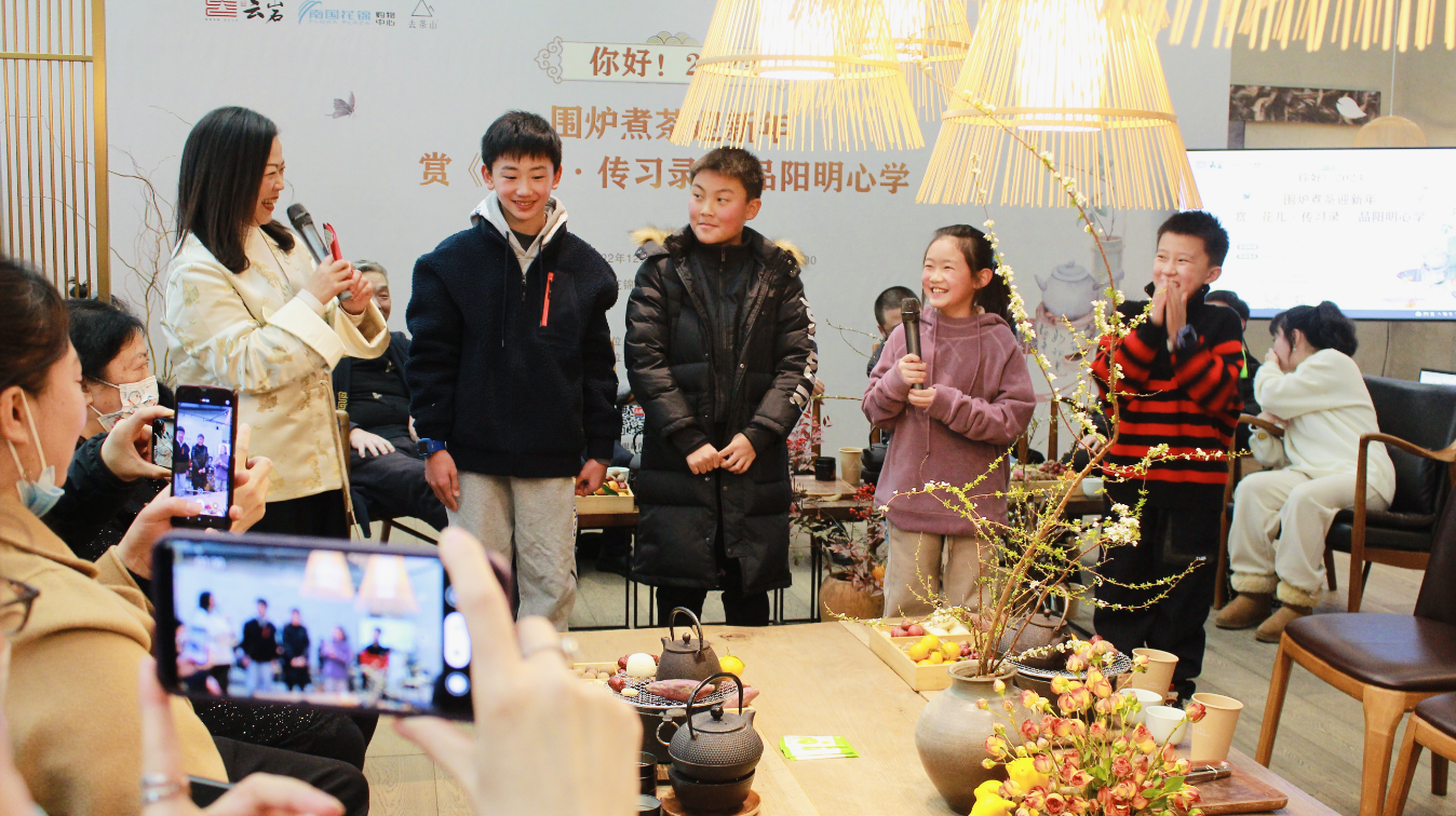 活动围绕“赏《花儿·传习录》 品阳明心学”这一主题进行了一场特别的迎新茶话会,借着围炉的炭火与氤氲茶香,贵州文化界多位知名人士与儿童短视频剧《花儿·传习录》主创团队一起,围炉生火、煮茶会友。