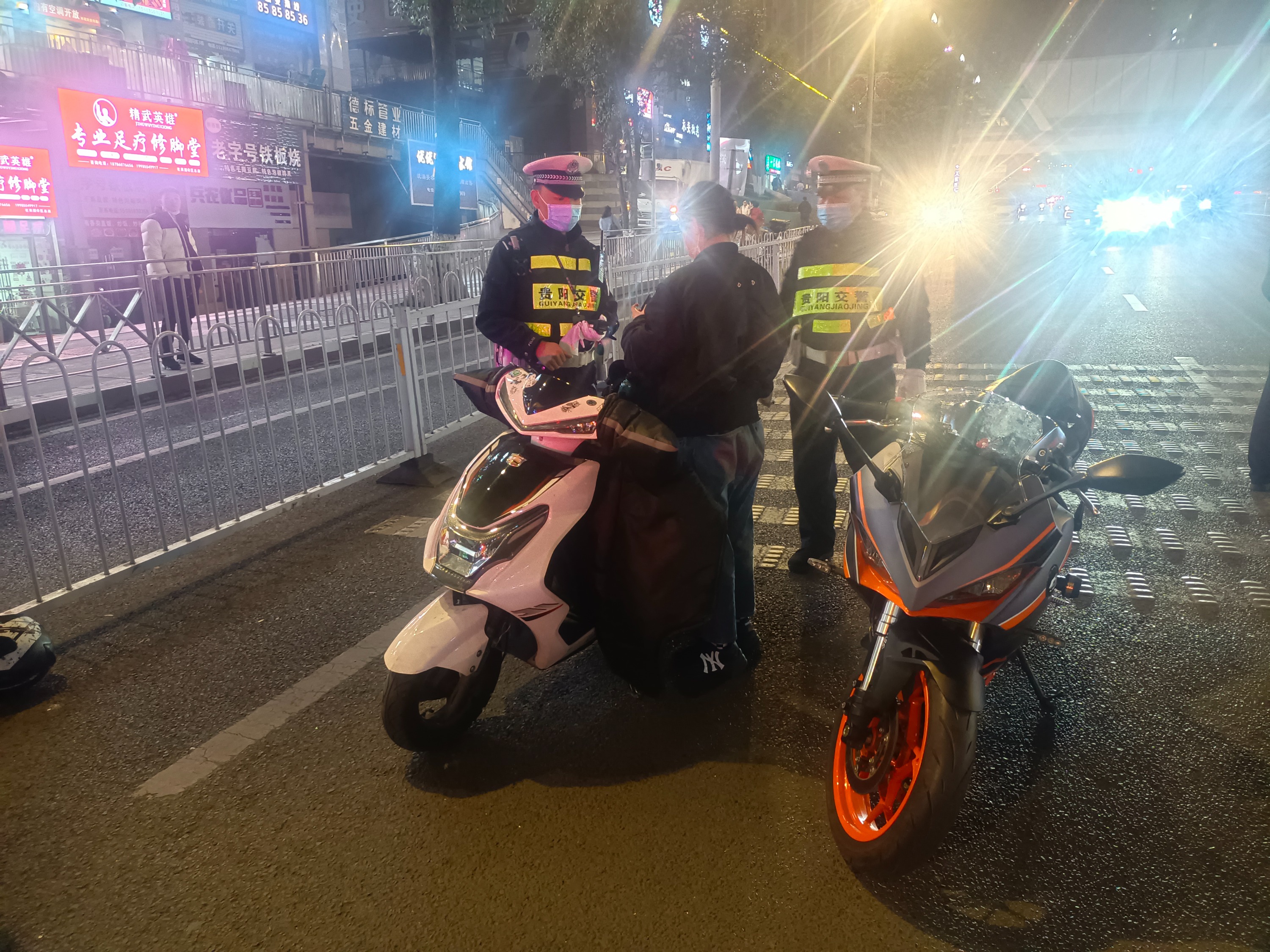 为及时消除交通安全隐患,减少交通事故的发生,给群众营造一个良好的出行和夜间休息环境,2月27日晚,南明交警在花果园开展“静夜行动”,对摩托车非法改装、飙车扰民等交通违法行为进行整治。