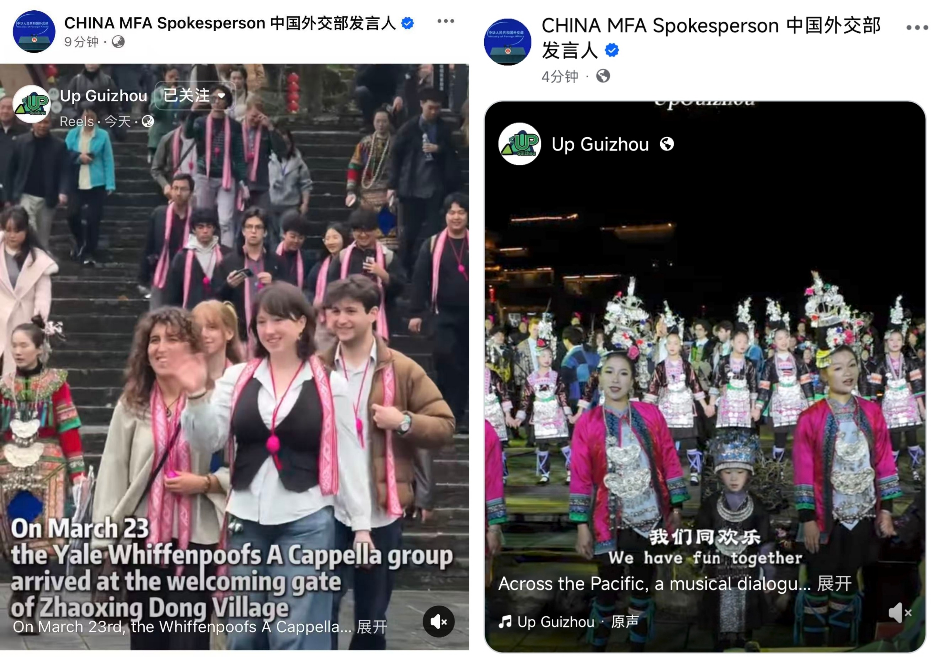 近日,中国外交部发言人官方账号在海外社交平台连续转发的两段视频——一段中美青年侗寨门前的即兴对唱,一段晚会上携手唱响《让世界充满爱》的画面——让这场跨越太平洋的音乐对话,走进了全球的视野。