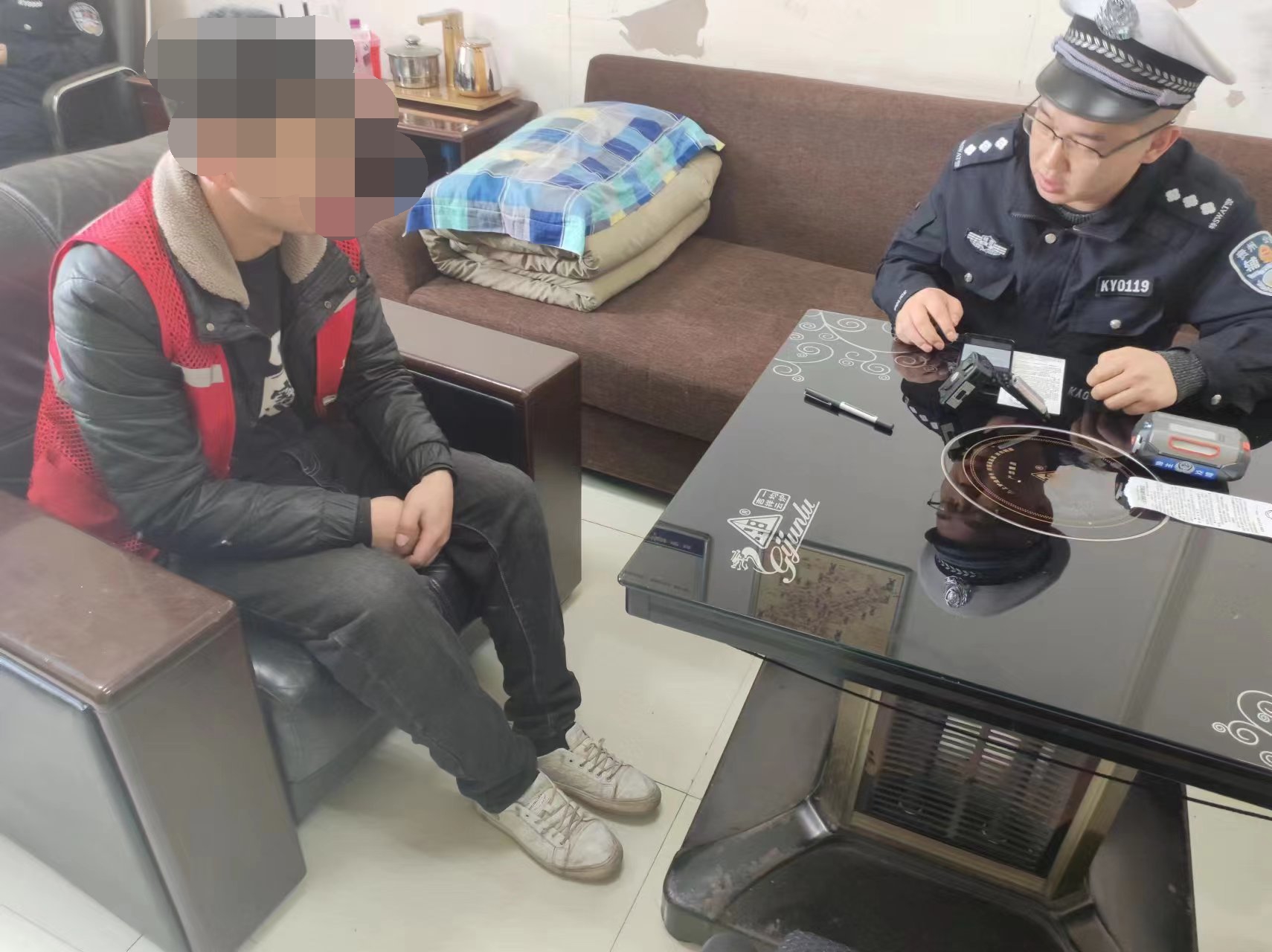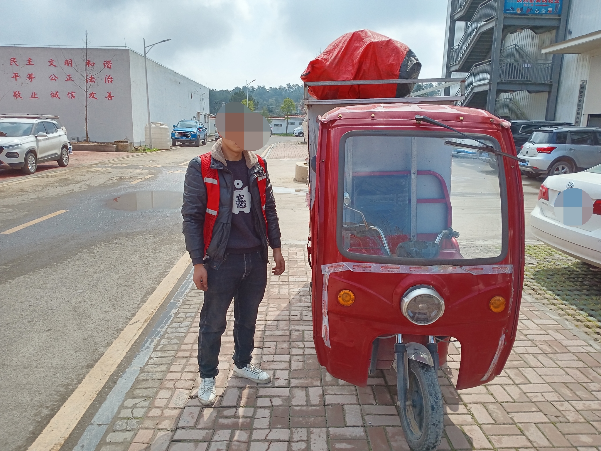接到报警后,开阳交警大队的民警立即开展调查,因该车是一辆快递运输车。3月22日11时许,执勤民警来到快递公司,刚刚到达快递公司门口,便看见套牌三轮车驶出来,于是,随即民警将其截停。