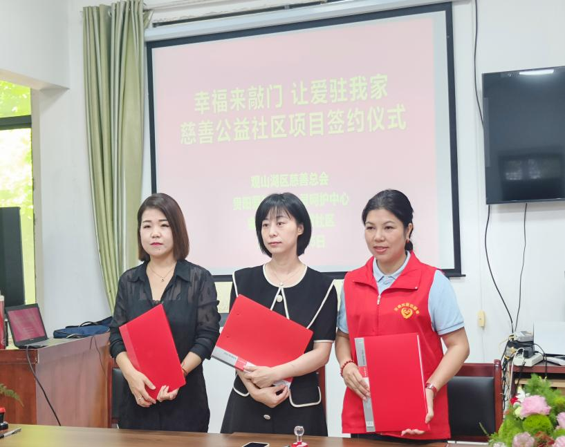 活动中,在社区爱心传播达人、居民代表、商户代表等与会人员的见证下,贵阳市观山湖区慈善总会、金华园街道金徽社区和贵阳爱与陪伴心灵呵护中心三方共同签署合作协议。