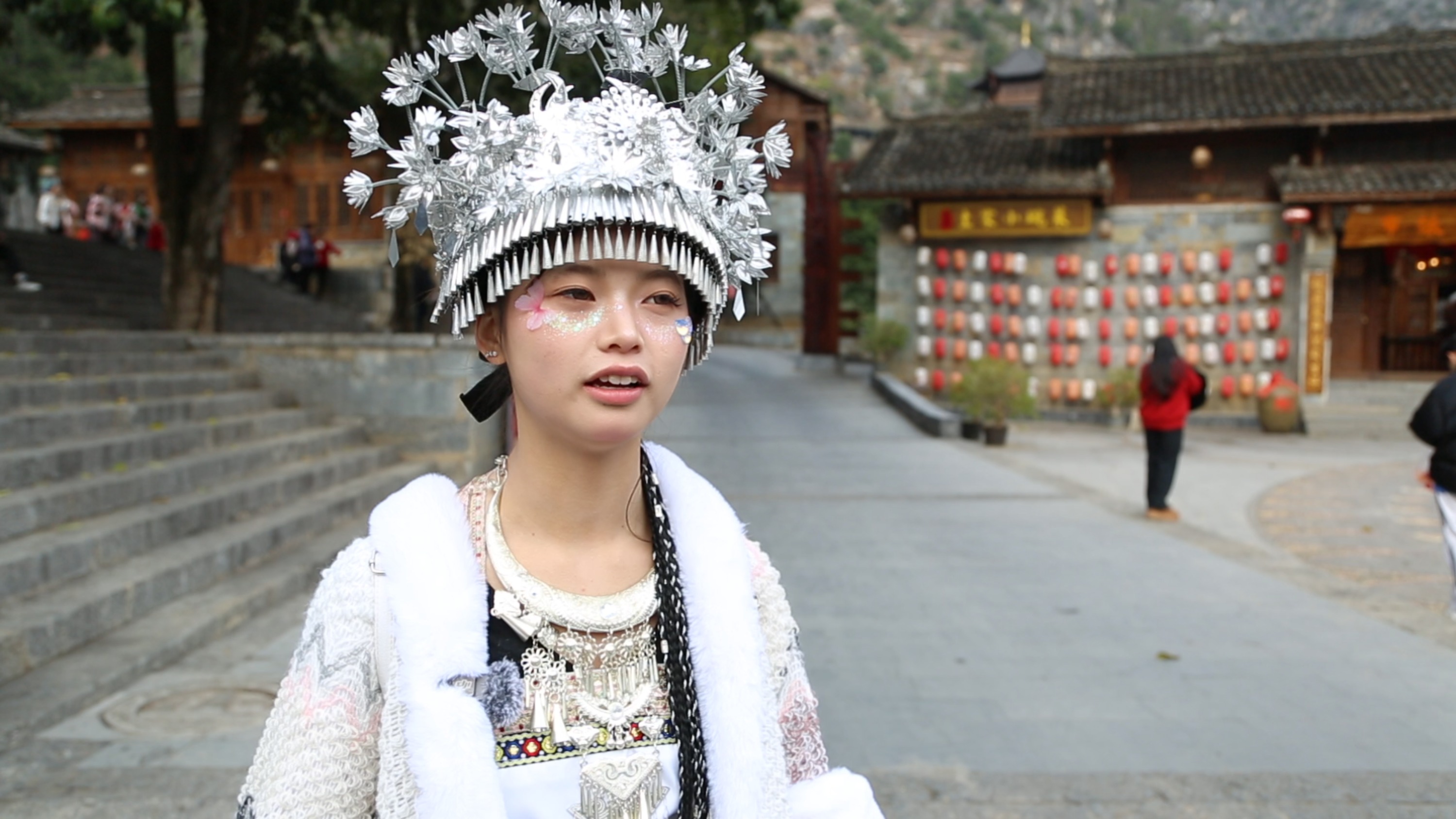 游客高海凤说,景区很有春节的气氛,满满的布依风情,山美水美,还有很多的吊脚楼,很漂亮,玩得很开心。