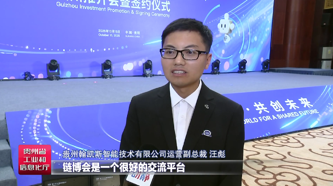 贵州翰凯斯智能技术有限公司运营副总裁汪彪说,链博会是一个很好的交流平台,让公司接触了很多各类的供应商,扩展了企业的朋友圈。公司的产品已经进入到了全球30多个国家。最近,公司在研发新款的各种各样无人驾驶的移动空间的产品,马上会比较规模化的落地。