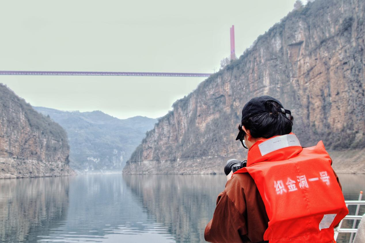 来到乌江源百里画廊,最不能错过的自然是乘船游览。采风团选择了最热门的线路,化屋基码头至鸭池河大桥。