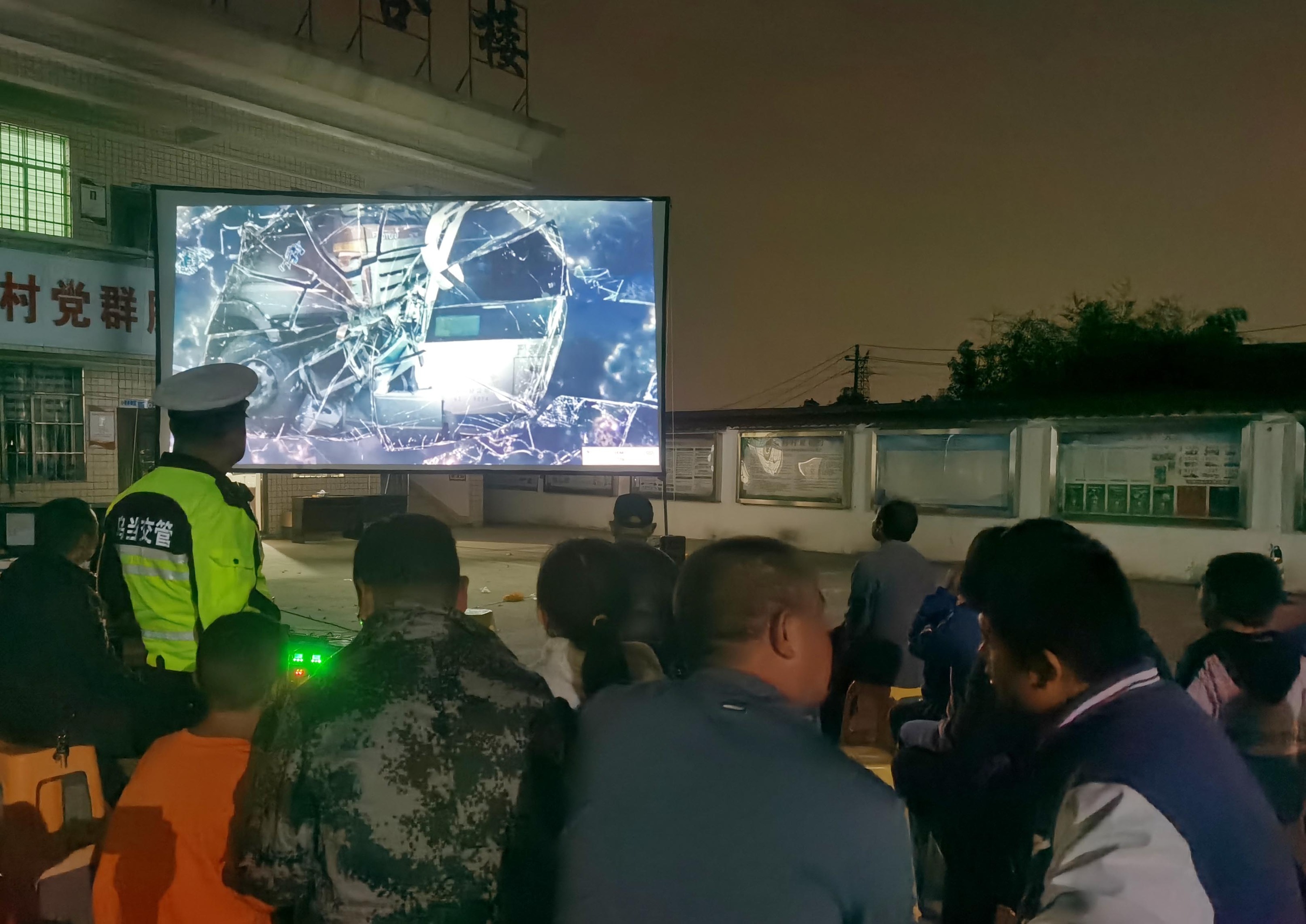 朦胧的暮色已铺开,正是电影宣传的好时候。当日18时许,在阿栗村村委会广场上,村民在清凉的微风里集中观看《农村交通事故警示片》,影片逻辑清晰、节奏适宜,真实还原交通事故起因和后果,直击观者心灵。村民就故事内容进行讨论,充分自查驾驶行为有无缺漏,并纷纷表示喜欢这样的宣传形式。