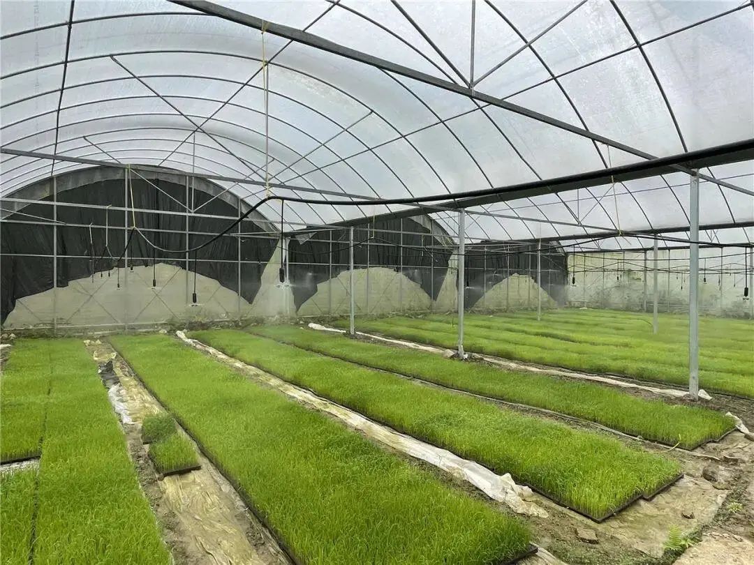 走进鱼塘乡大龙村集中育苗点,放眼望去,一排排绿油油的秧苗焕发着勃勃生机,秧苗被整齐铺放在苗床上,长势格外喜人。工作人员正在为秧苗洒水,让秧苗保持湿度生长得更好。