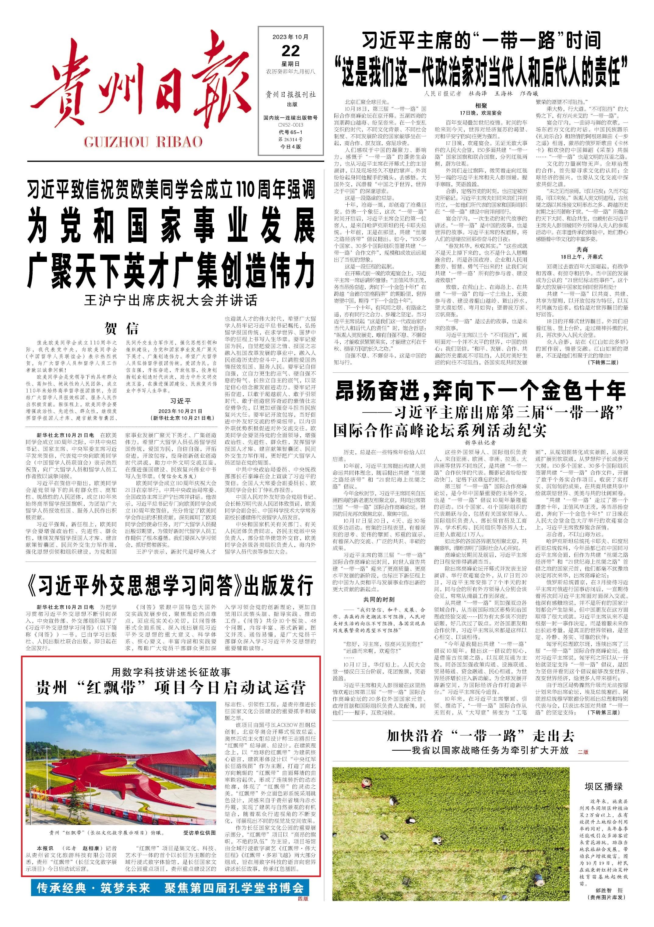 记者从贵州省文化旅游科技有限公司获悉,贵州“红飘带”(长征文化数字展示项目)今日启动试运营。