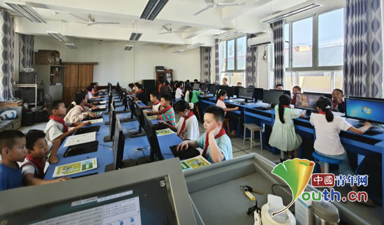 志愿者刘俊给孩子们上信息技术课。四川农业大学研支团供图