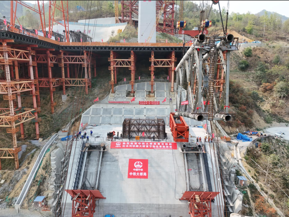 黄百铁路红水河铁路大桥首节拱肋吊装成功