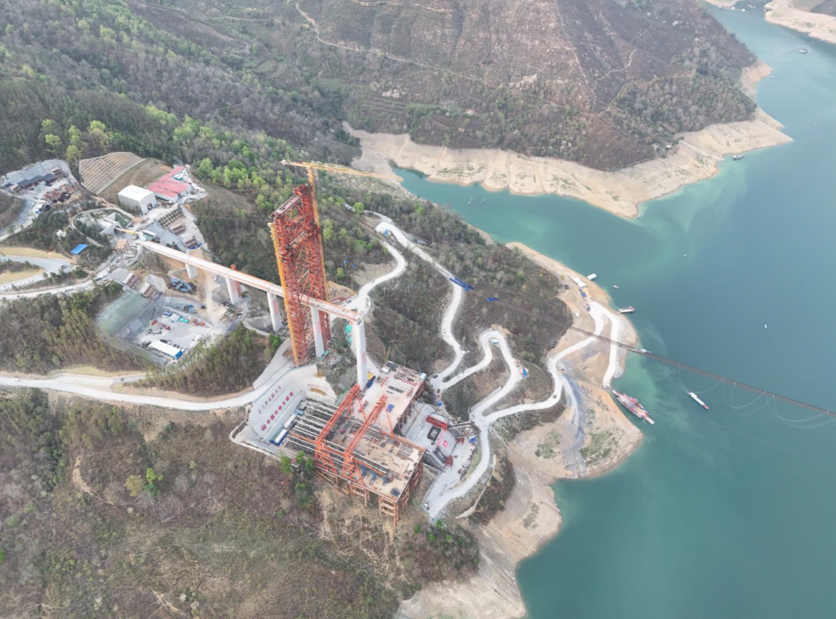 记者从沪昆客专贵州公司获悉,3月21日,在黔桂交界的红水河深切峡谷之上,随着缆索吊机将拱肋首节段平稳提升,并成功跨越峡谷,精准落座于贵州岸拱座之上,新建贵州黄桶至广西百色铁路(简称“黄百铁路”)贵州段控制性工程红水河铁路大桥正式拉开主桥上部结构施工序幕,标志着这座世界级桥梁从“筑基”迈向“攀高”新阶段。