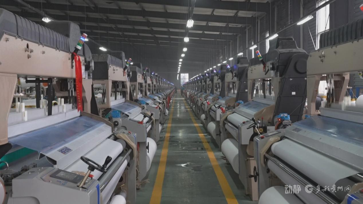 贵州浙黔再生资源纺织印染有限公司生产厂长陈忠法说:“6台加弹机全部运行,每天产能是24吨;两台高速整经机正常运行,每天能生产20个经轴;312台织布机目前已经调试完毕,正常运行183台,加老厂区的48台,每天产能能达到11万米。争取到这个月底360台织布机全部调试完毕,每天产能能生产17万米。”