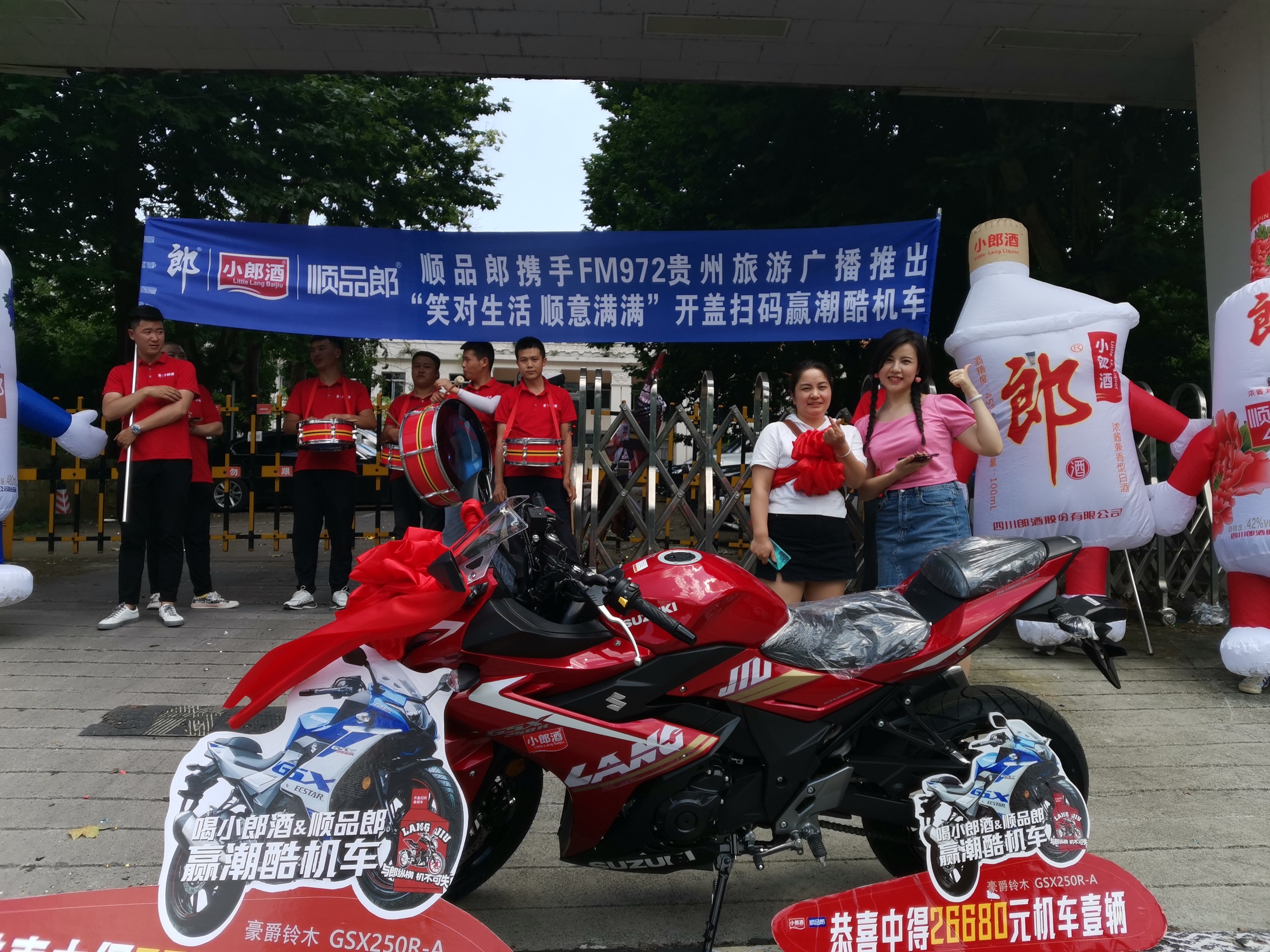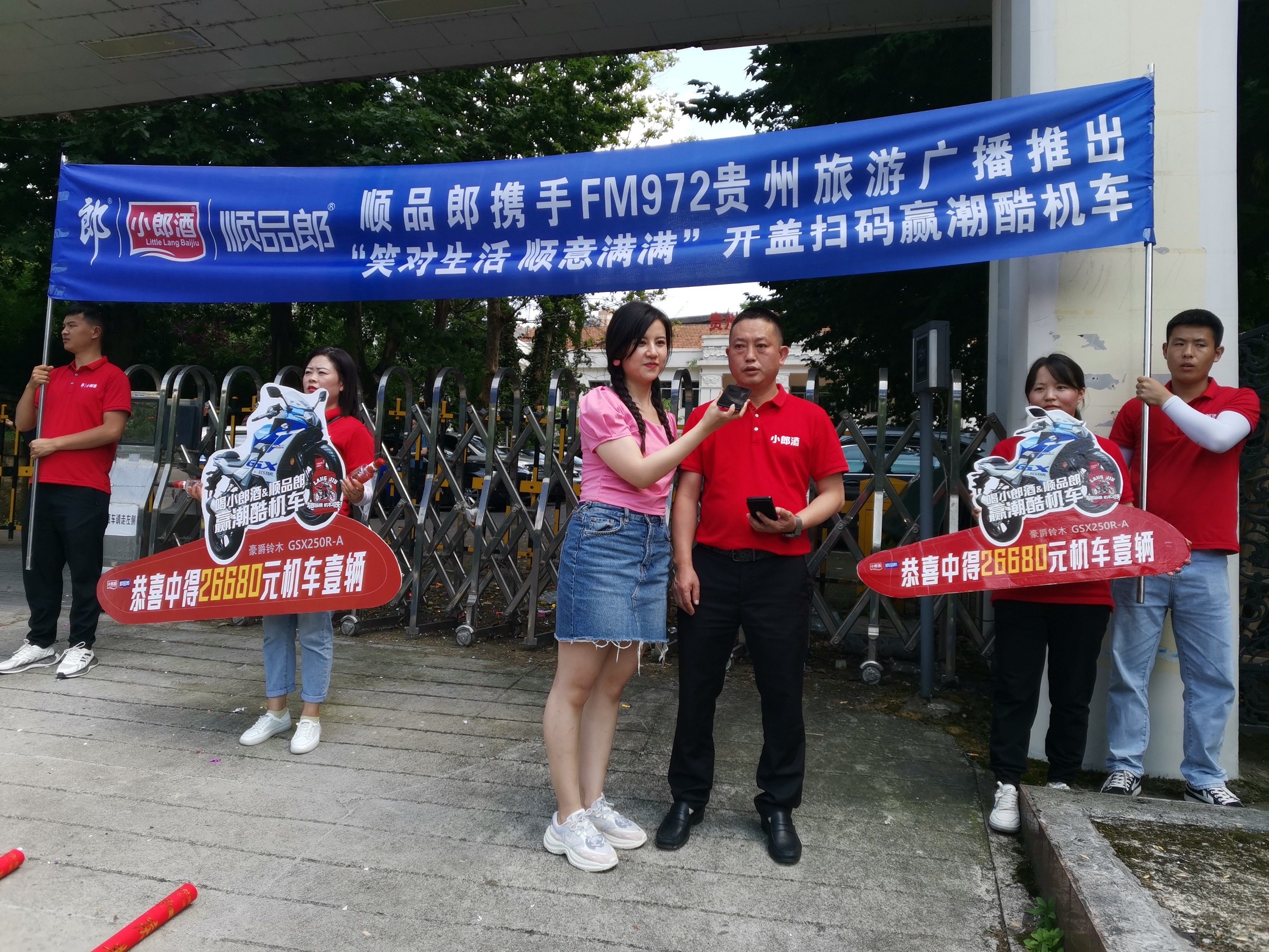 7月6日,贵州广播电视台文体旅事业部旅游广播携手顺品郎推出“笑对生活 顺意满满”开盖扫码获大奖活动。当天下午,97.2贵州旅游广播和郎酒的小伙伴们齐上阵,将4000套2瓶装的顺品郎精品礼袋全部送到了各位热心听众的手上!