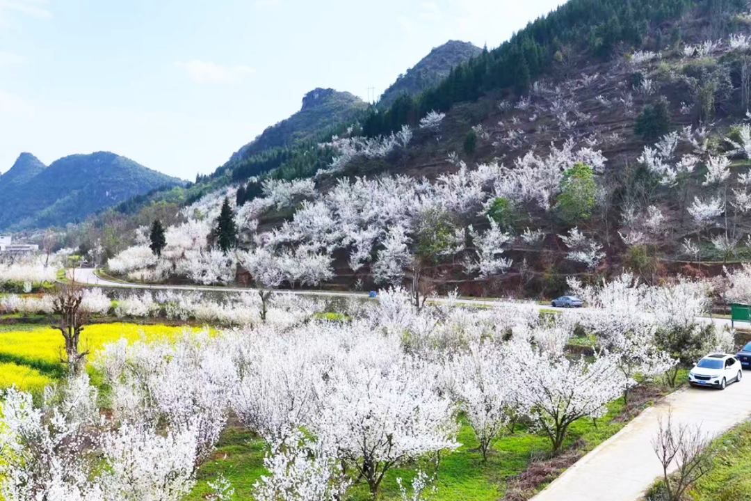 一组组数据彰显产业成效:镇宁自治县樱桃种植面积达4.38万亩,樱桃花盛开时节风景如画,年产值超5.4亿元;西秀区鸡场乡联兴村3000亩李花与茶园、油菜花相映成趣,仅赏花季就创造经济收入约800万元……从石漠荒山到万亩花海,安顺乡村用几十年坚守,在贫瘠的石旮旯里种出了希望,种出了幸福,更蹚出了一条生态效益与经济效益双赢的发展之路。