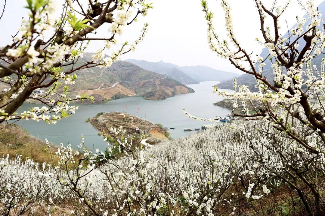 李花与碧水交相辉映