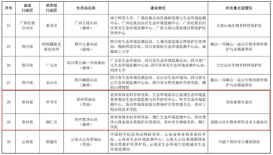 △第三批生态质量综合监测站名单(部分)。