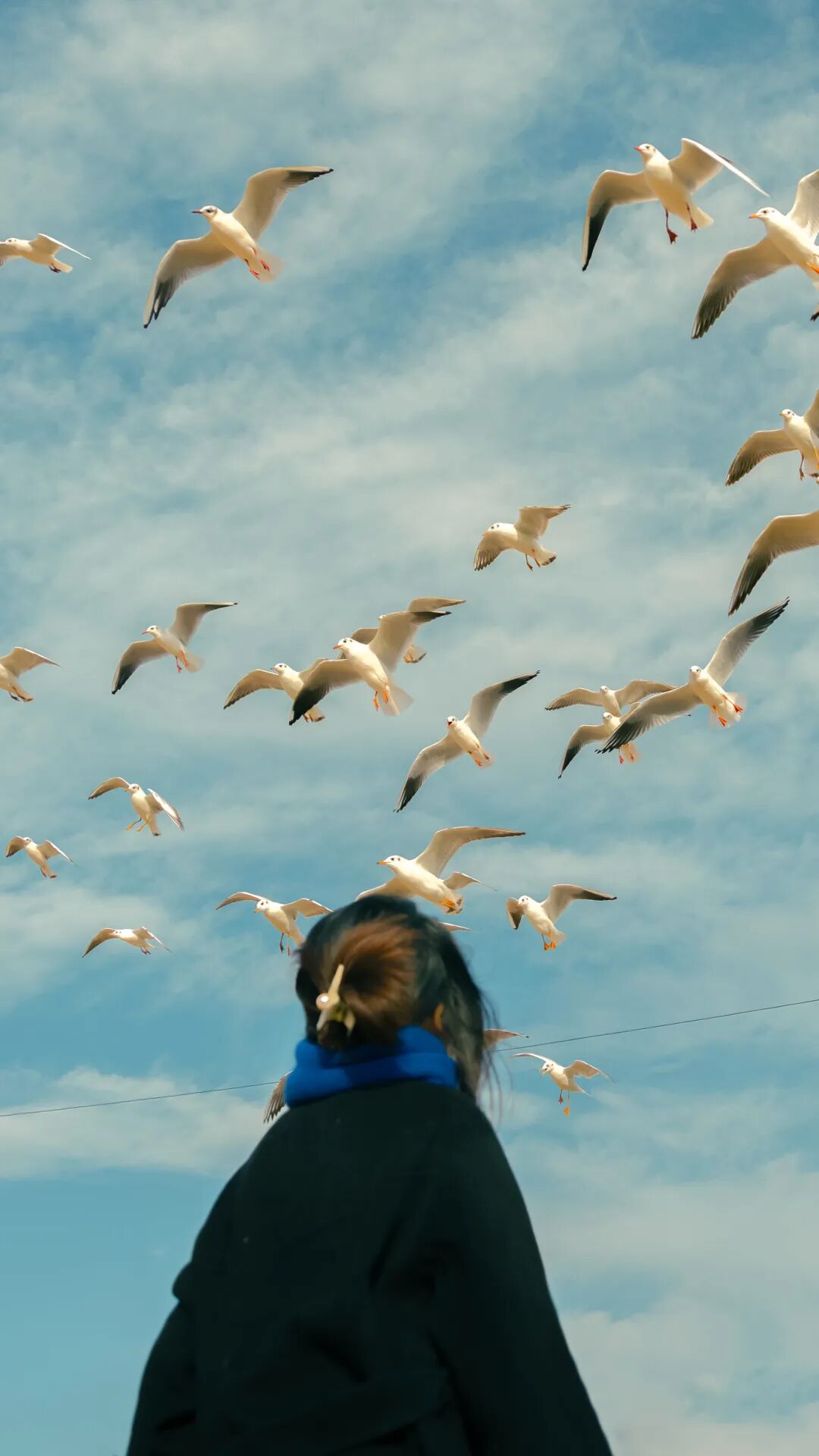 △2025年12月21日,海边街道江家湾码头,游客正在和红嘴鸥互动。(岳刚 摄)
