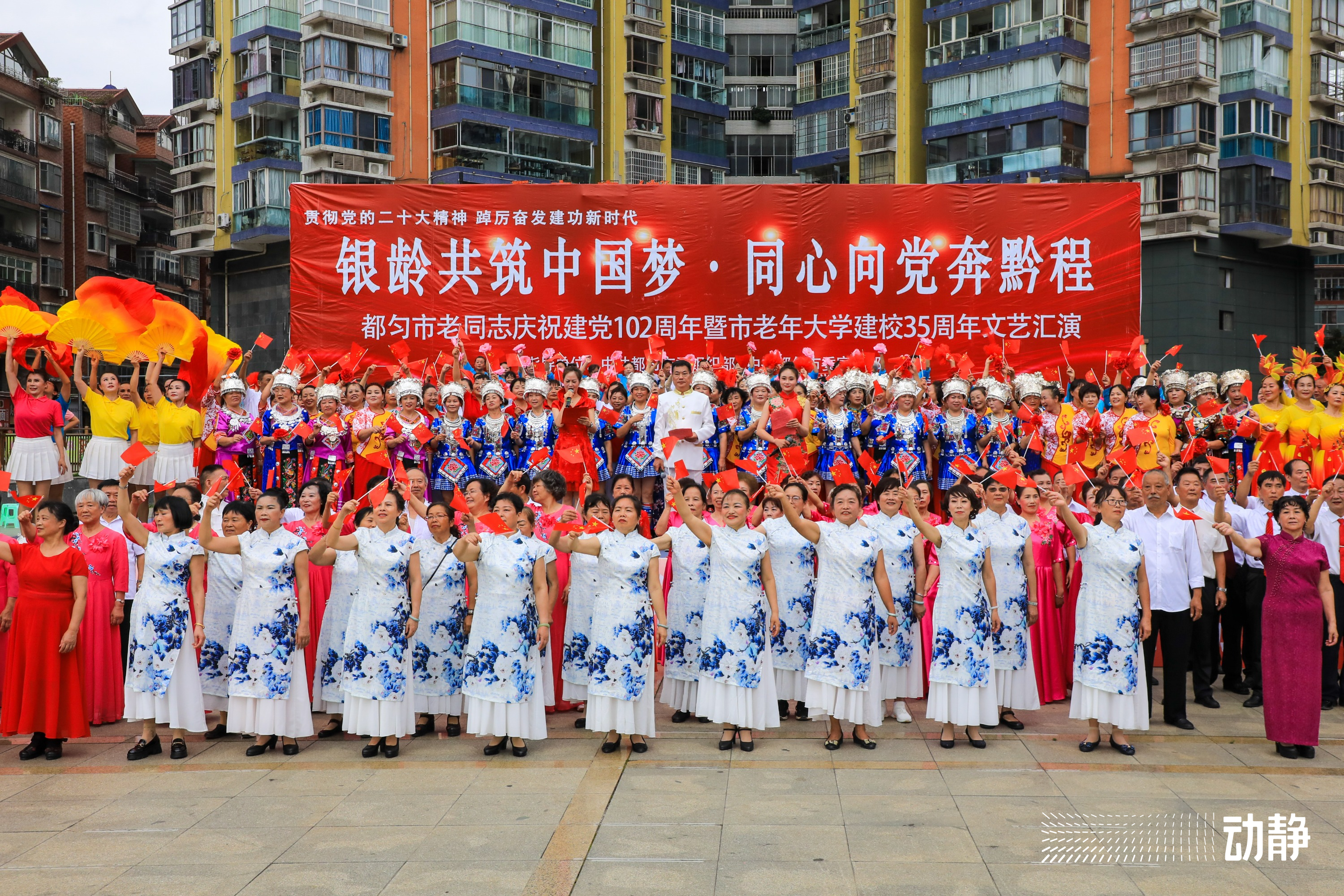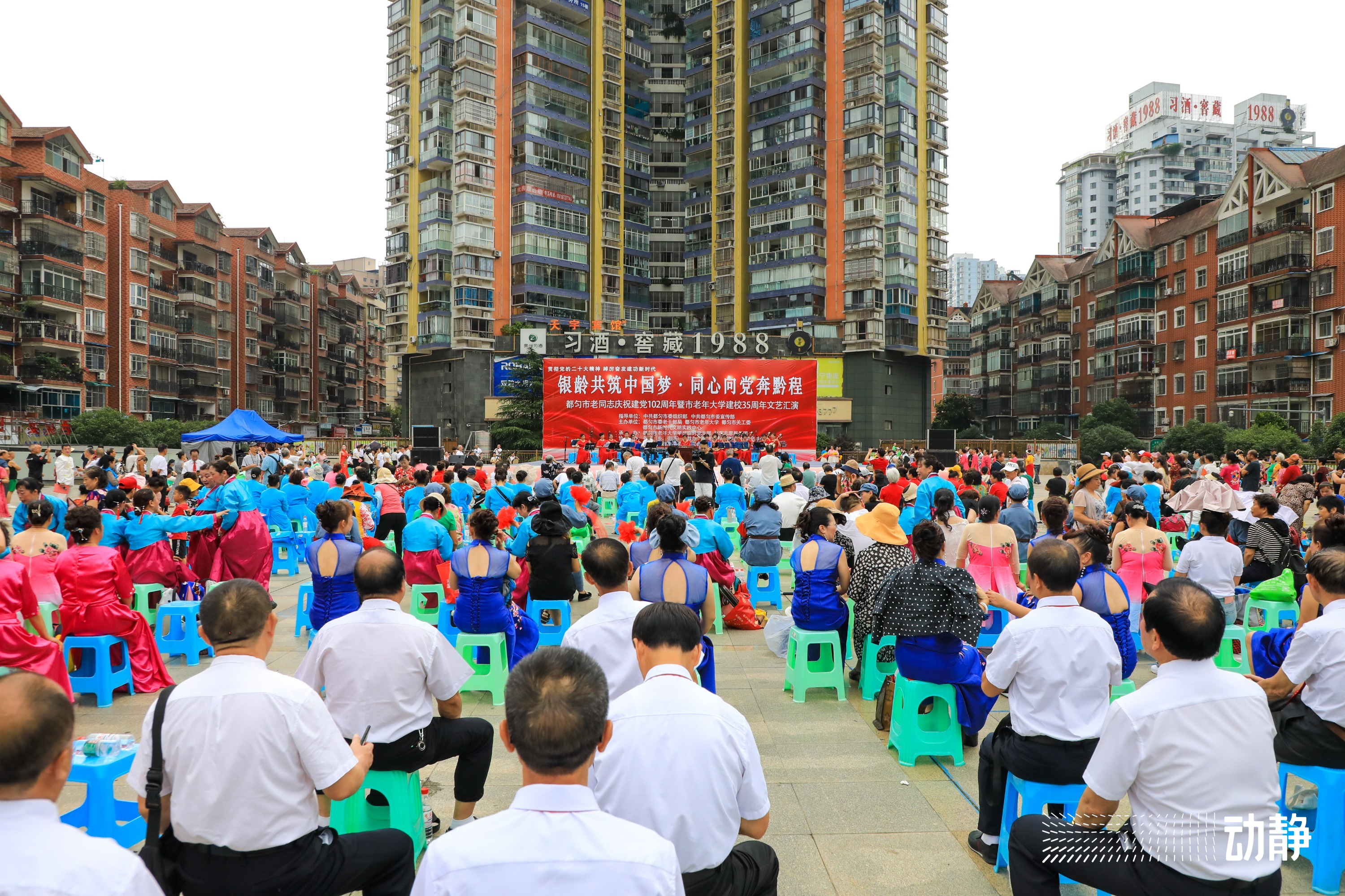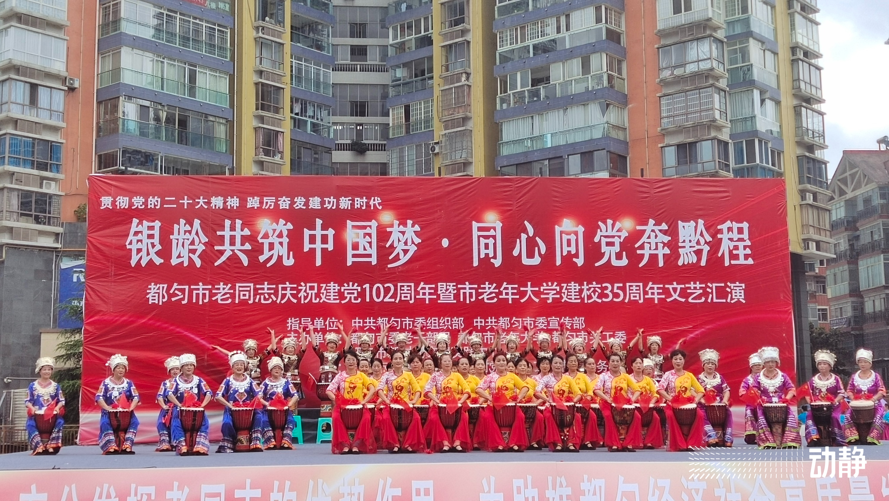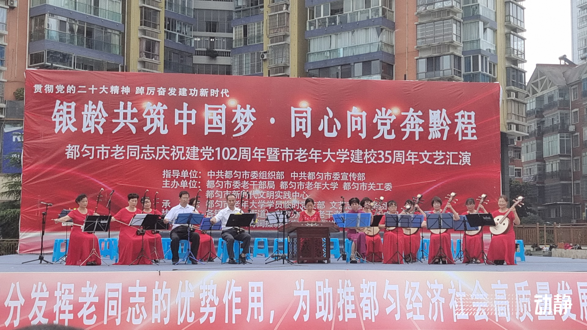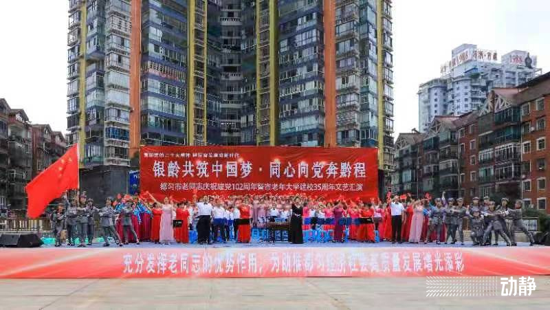 6月30日上午,黔南州都匀市老同志庆祝建党102周年暨市老年大学建校35周年文艺汇演在西苑广场举行。