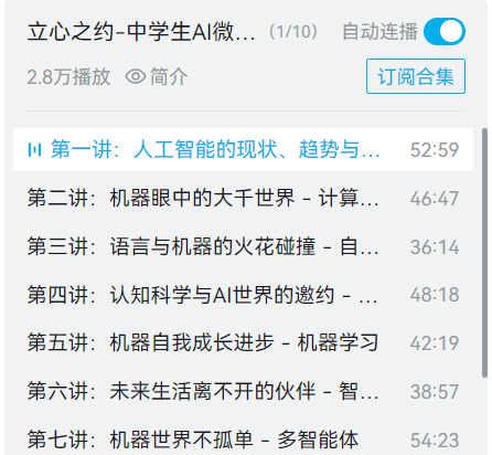 它是北大团队出的,10节讲座,由北大智能学院朱松纯教授带头,还有近20位专家专门给青少年做的,网友都叫它 “北大版AI生存指南”。