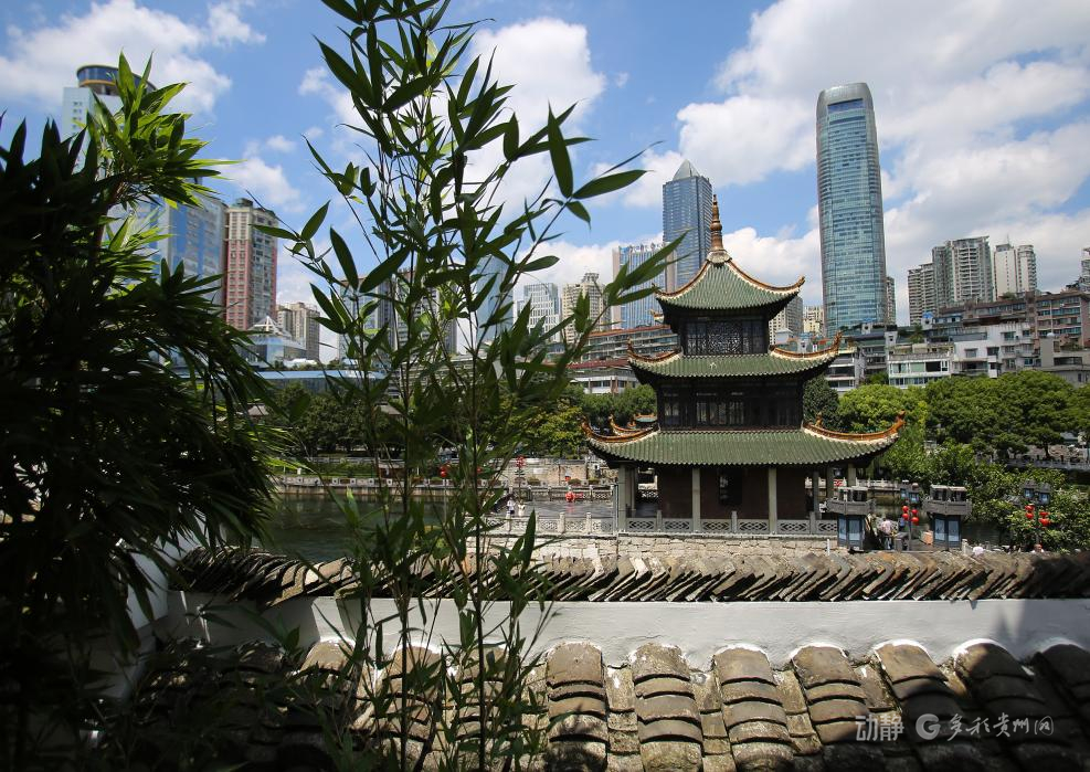 翠竹掩映中,甲秀楼与现代高楼对望,老城新貌在此交融对话