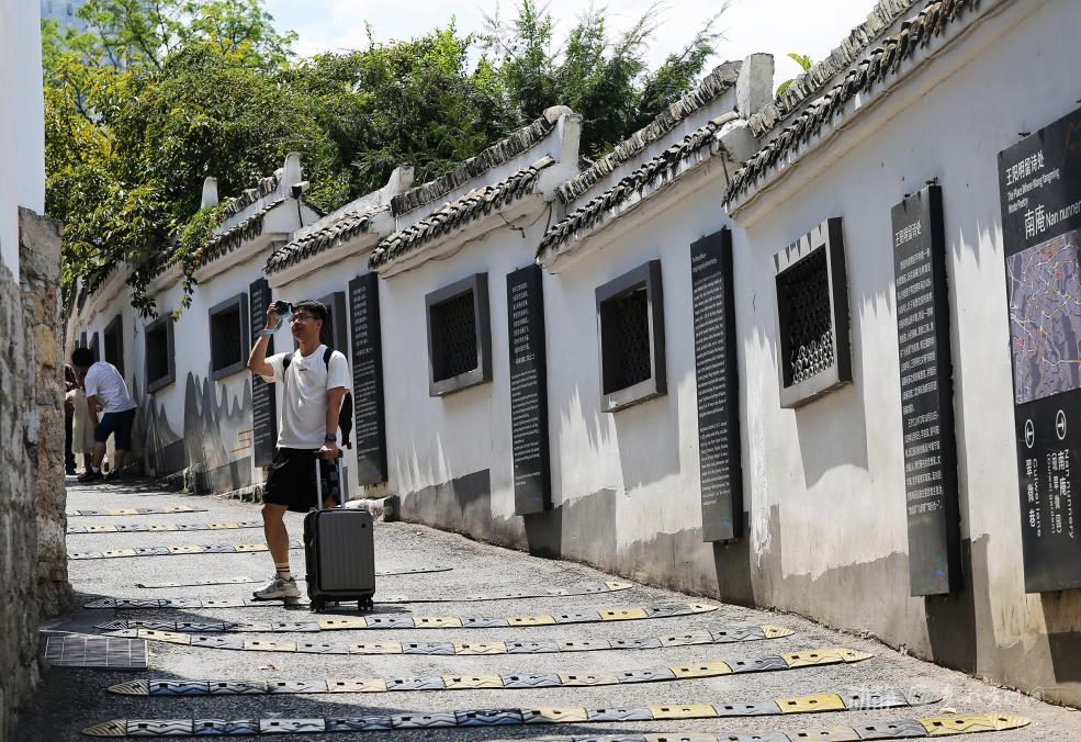 游客拖箱驻足,在白墙黛瓦的巷弄间,将老城景致收进镜头