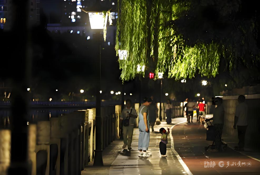 南明河畔的翠微巷夜色温柔,路灯、垂柳与行人,晕染出烟火人间的松弛