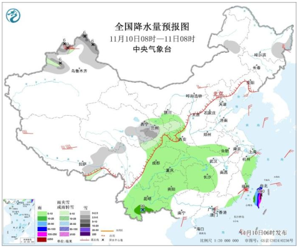 图3 全国降水量预报图(11月10日08时-11日08时)图片来源:中央气象台网站