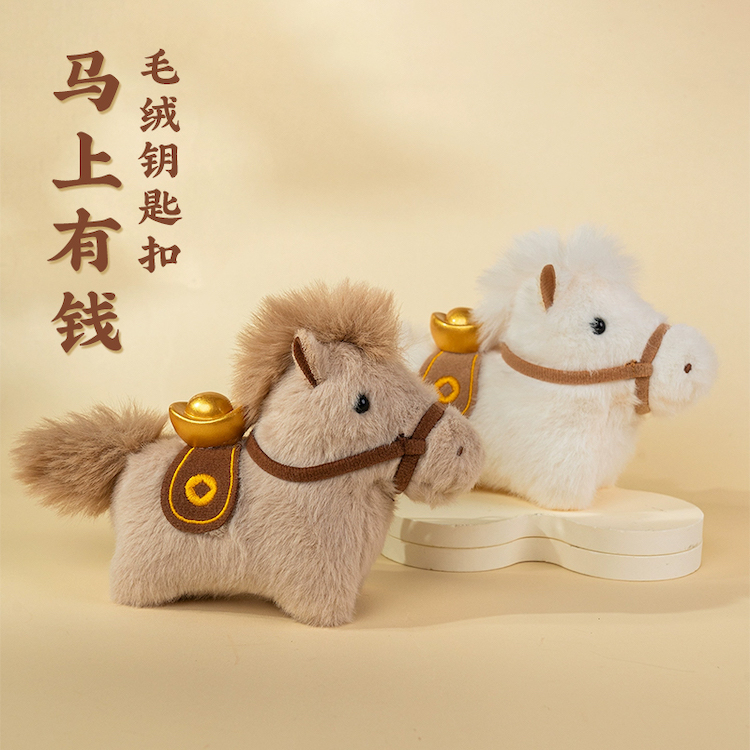 【墩墩马马上有钱毛绒钥匙扣吉祥物公仔挂件】