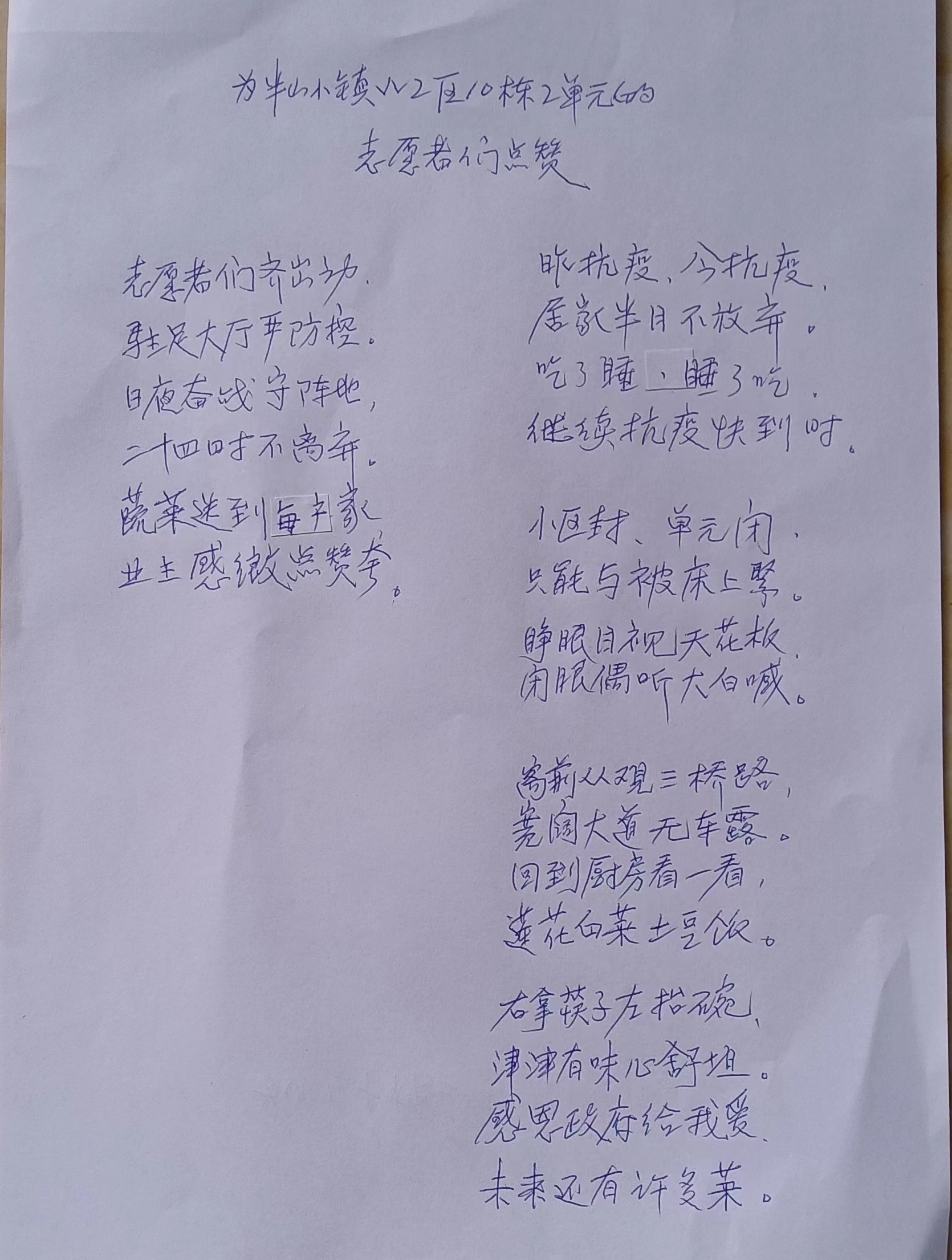 77岁的贵阳市民李龙俊,是一名党员,党龄56年。本轮疫情发生以来,家住贵阳市花果园半山小镇的他,已经居家临时静态管理13天。当看到志愿者们化身为“秩序员”“信息员”“配送员”助力疫情防控的忙碌身影,他以创作了打油诗的形式表达对抗疫一线的医护人员、社区志愿者们的敬意。