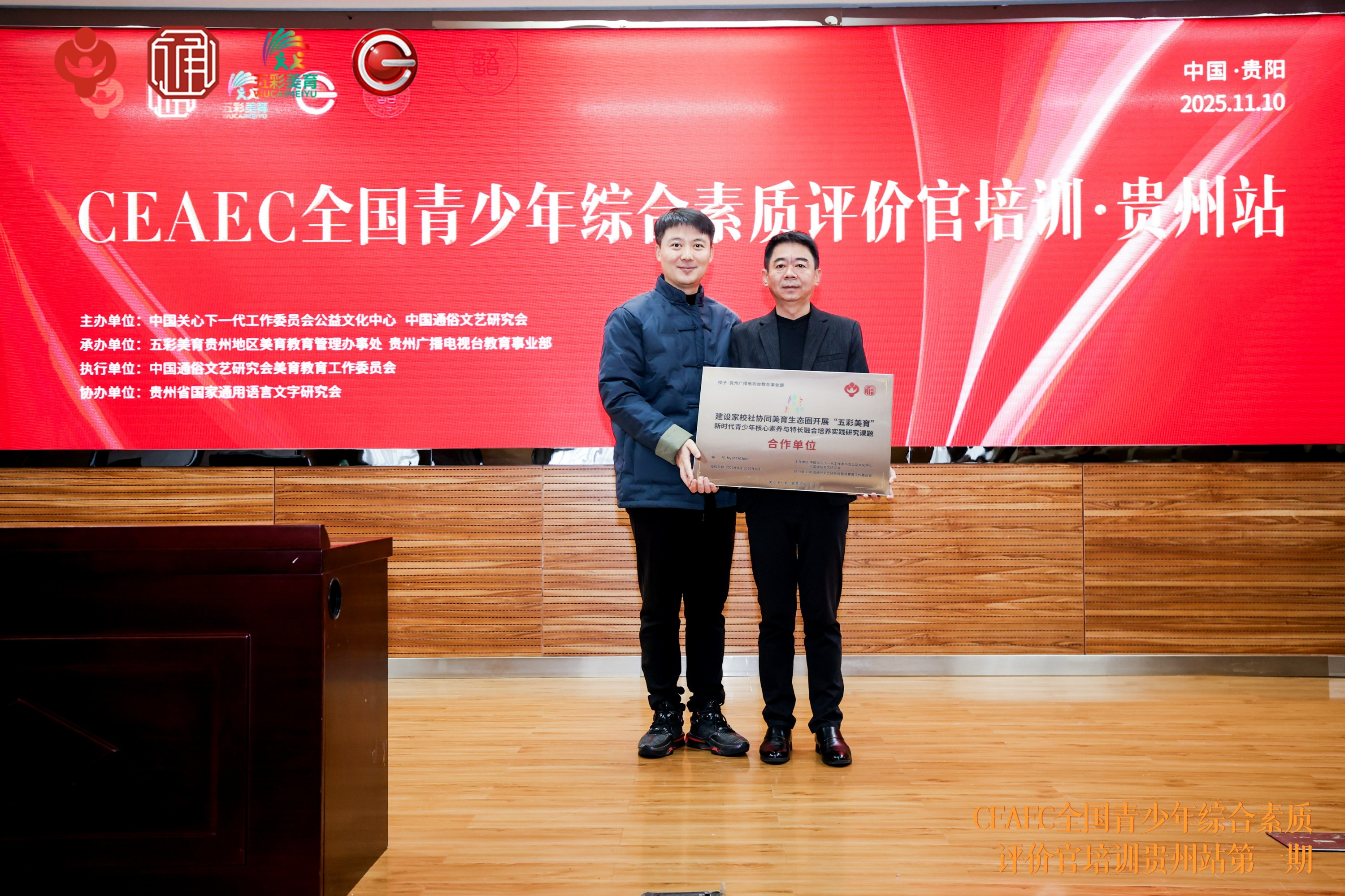 为深入贯彻落实中共中央办公厅、国务院办公厅《关于全面加强和改进新时代学校美育工作的意见》精神,推动青少年综合素质评价体系专业化建设,2025年11月10日,由中国关心下一代工作委员会公益文化中心&中国通俗文艺研究会主办,中国通俗文艺研究会美育教育工作委员会执行,贵州广播电视台教育事业部承办的CEAEC全国青少年综合素质评价官贵州站培训圆满结束。