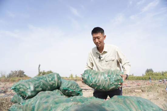 王志强,毕业于山西农业大学,2021年8月参加大学生志愿服务西部计划,目前服务于新疆生产建设兵团第十四师昆玉市四十七团七连。他带着自己大学中所学到的知识和创业积累的资源,从山西来到塔克拉玛干沙漠边缘的小镇,带领当地职工群众找寻新的致富之路。