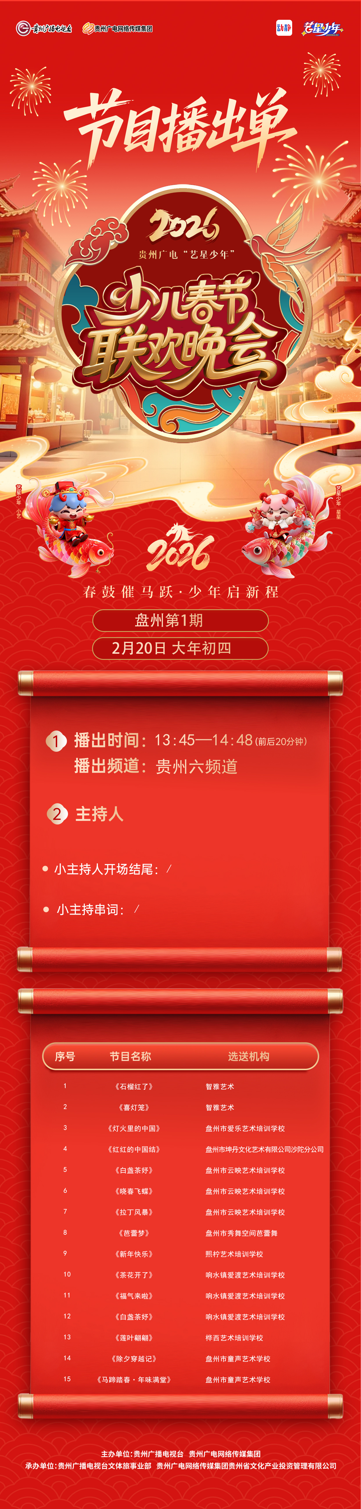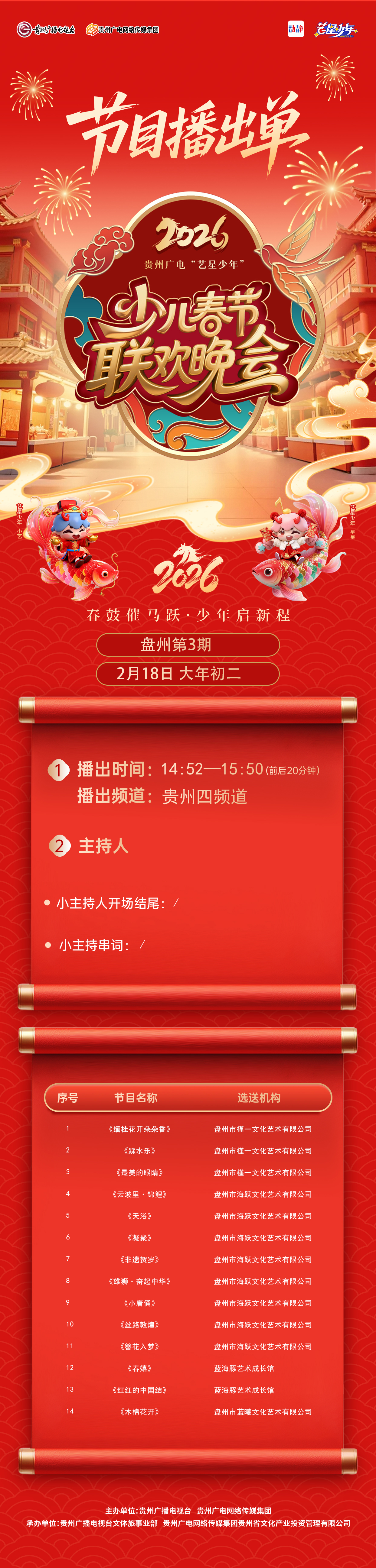 【盘州播出通知】贵州广电2026“艺星少年”少儿春节大联欢活动——节目播出通知!!!