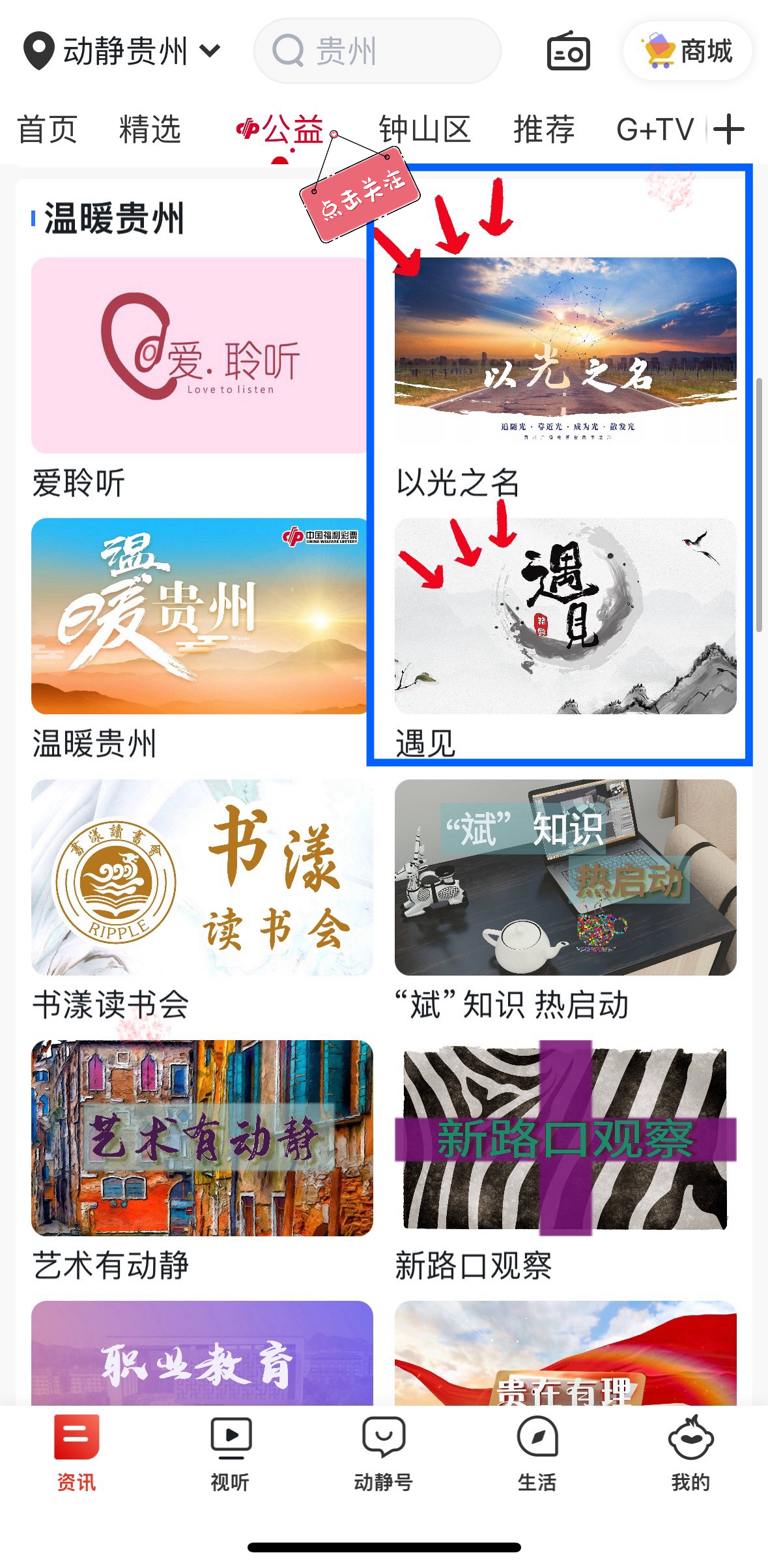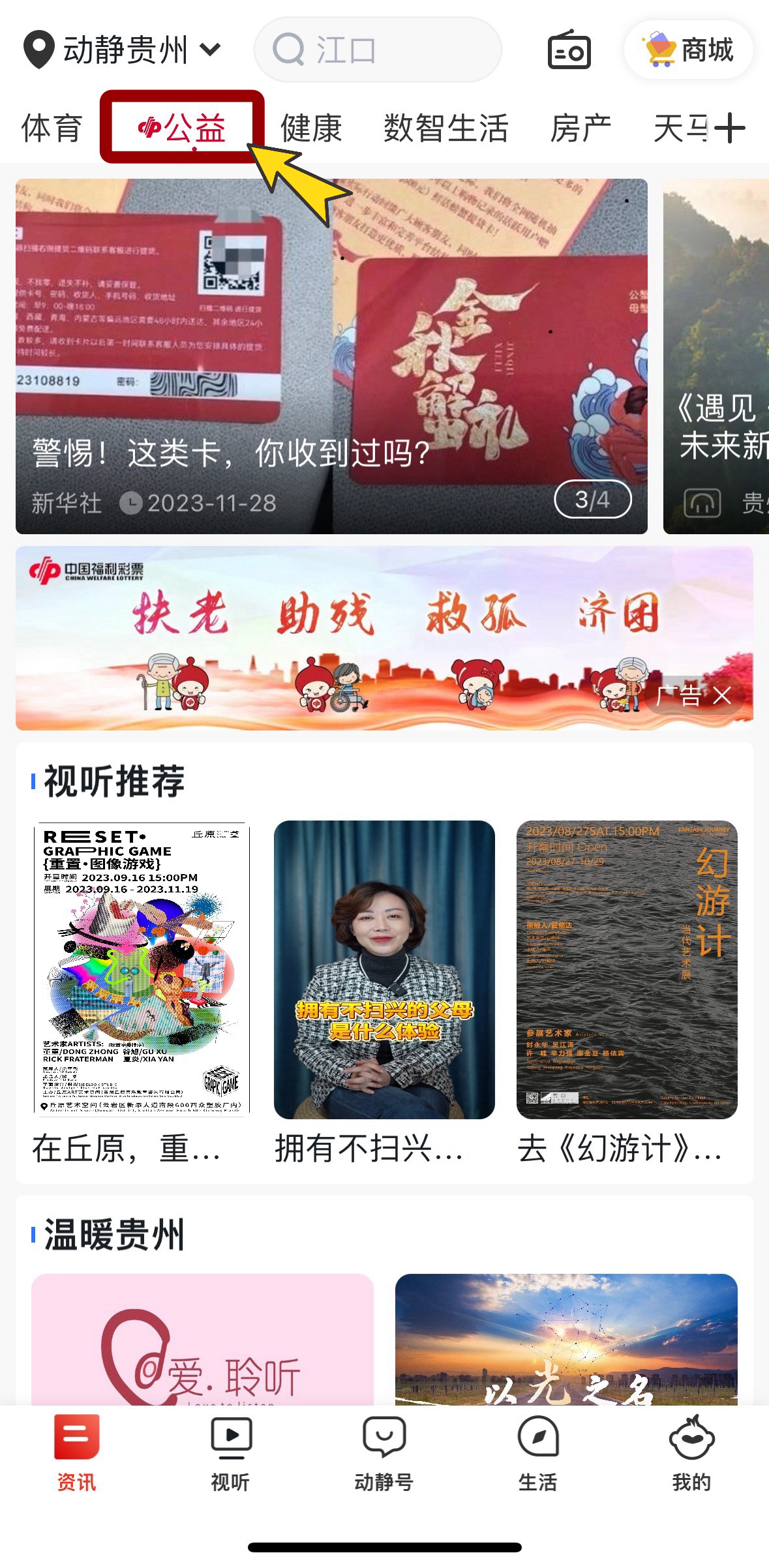 打开动静App【公益】页面