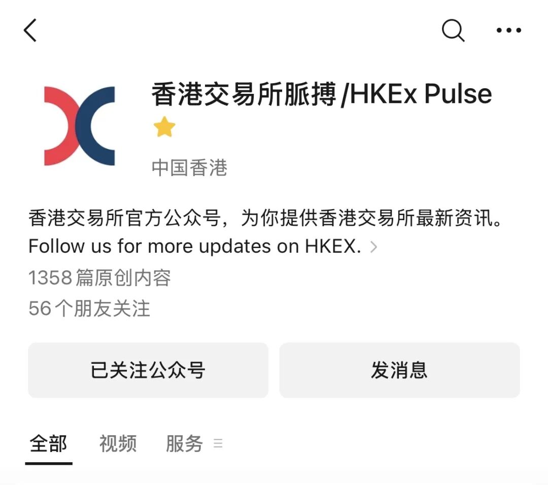 官方微信公众号,分享香港交易所最新重大新闻、上市活动、业务发展及市场监管动态。