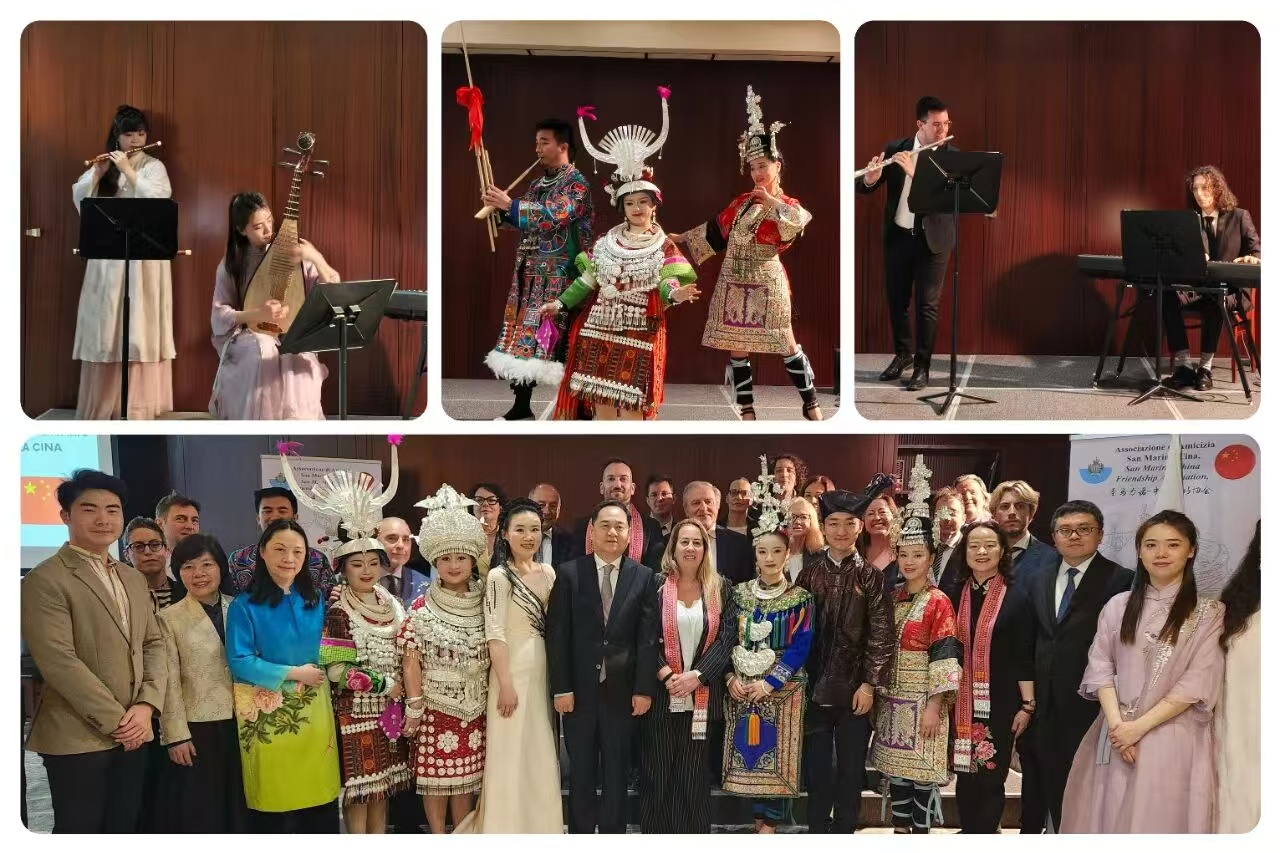 开幕式上,贵州“村T”团队带来少数民族歌舞《苗岭谣》与意大利女高音歌唱家演唱的和平友谊主题歌曲交相呼应,展现两国传统友好与文化交流的蓬勃生机。